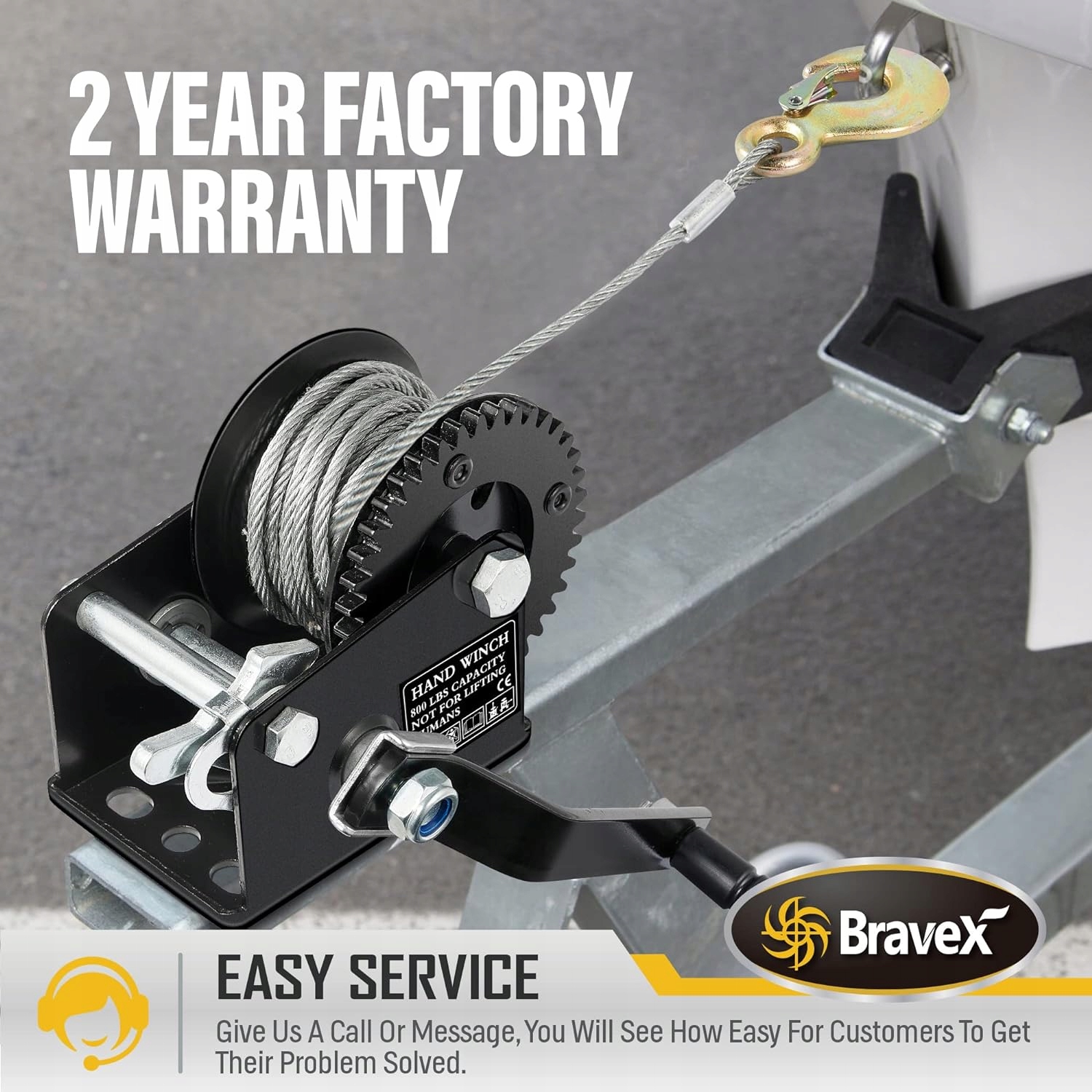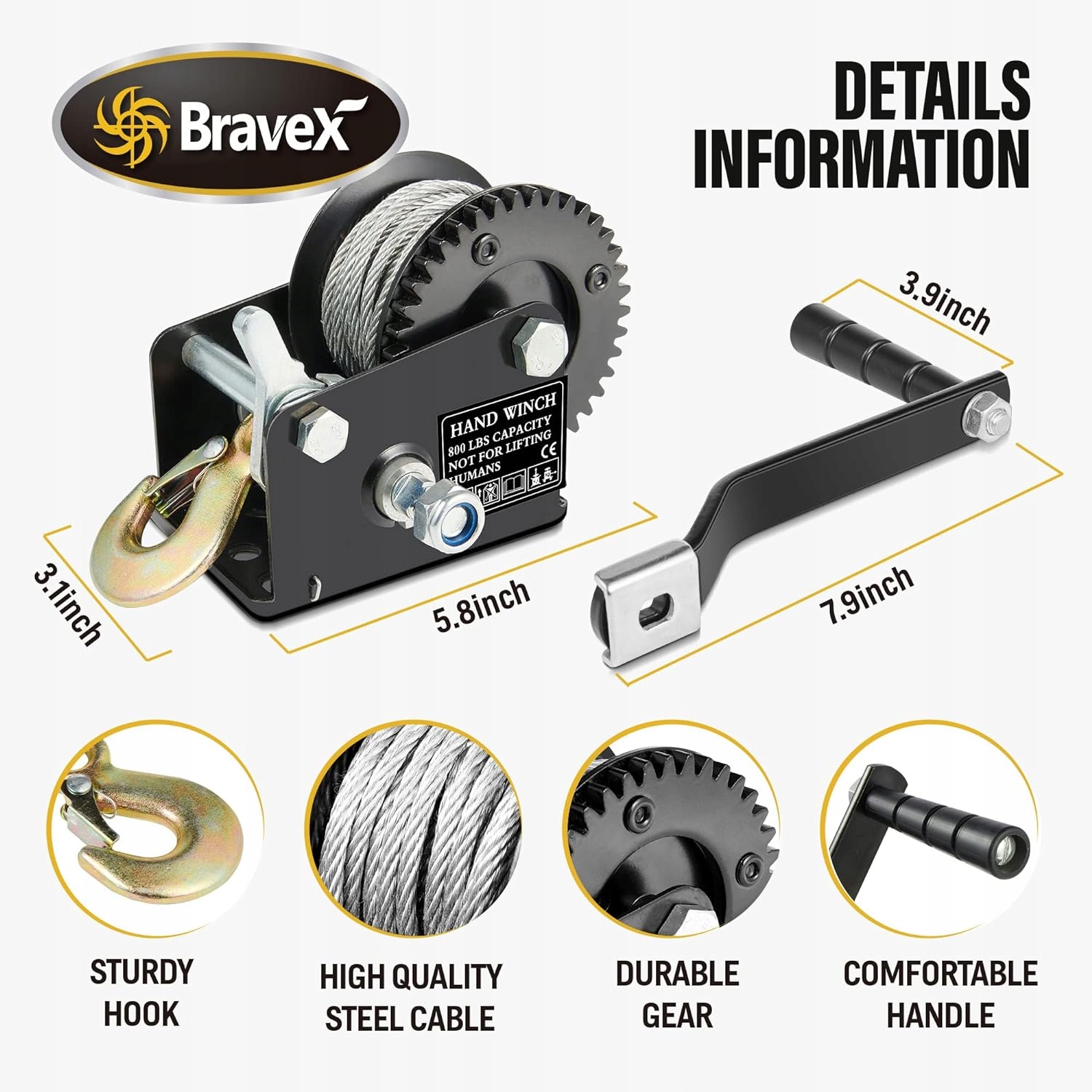 Bravex Winch Портативная ручная лебедка 362 кг с рукояткой 26 футов