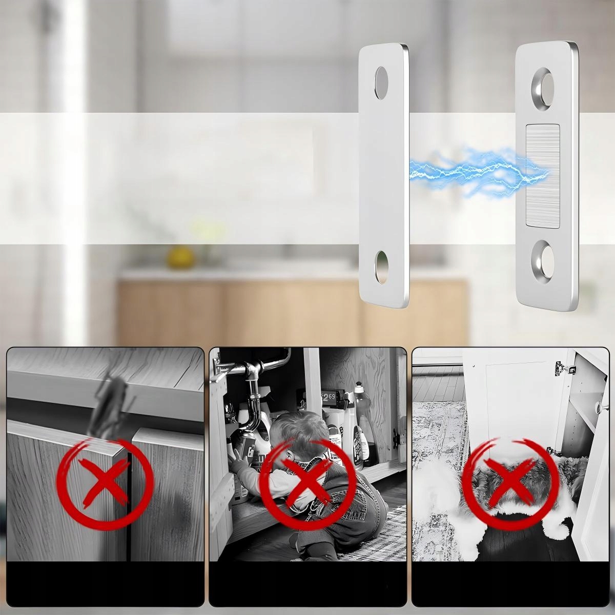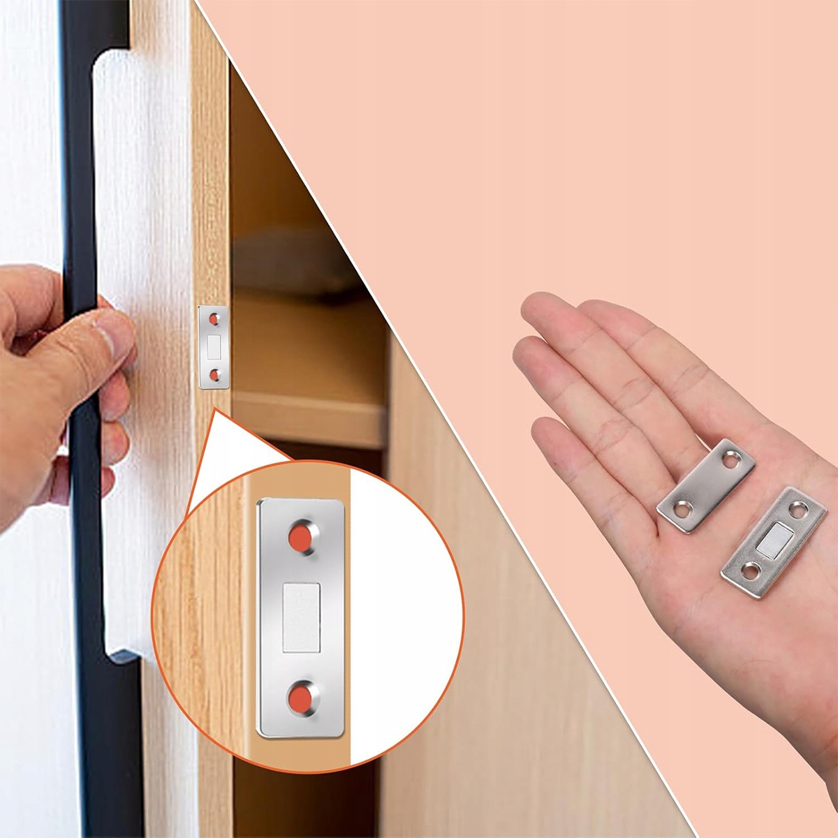 👉Эта магнитная дверная защелка содержит один магнит, который удерживает постоянно открывающиеся дверцы кухонного шкафа или закрытые ящики, что подходит для использования на дверях, где защелка или петли бесполезны.