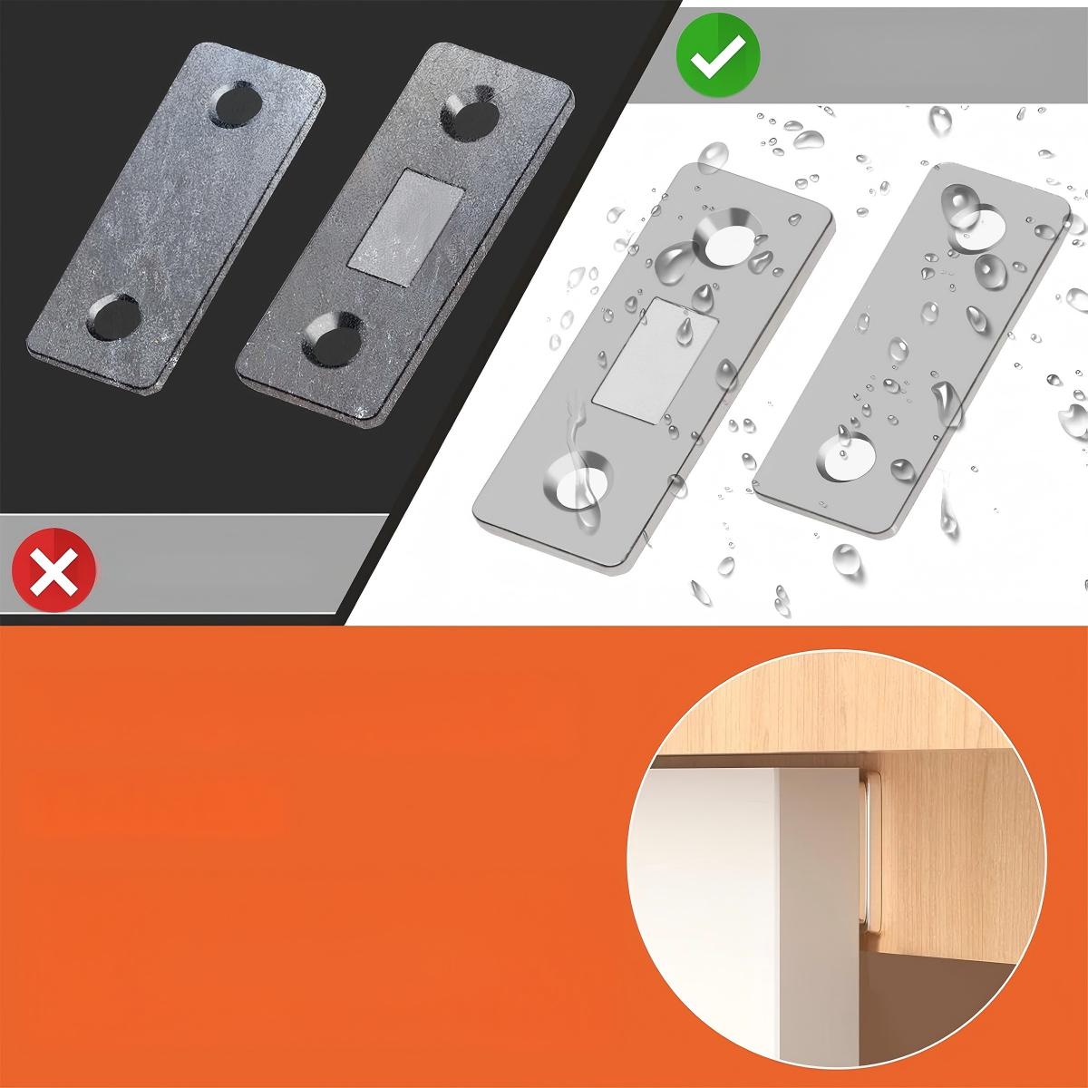👉Эти плоские магниты для шкафа изготовлены из нержавеющей стали, устойчивой к коррозии и растрескиванию, более прочной и долговечной, чем пластик. Дверной замок шкафа также поставляется с крепежными винтами из высококачественной нержавеющей стали. Вам не нужно беспокоиться, что винт легко сломается во время установки.