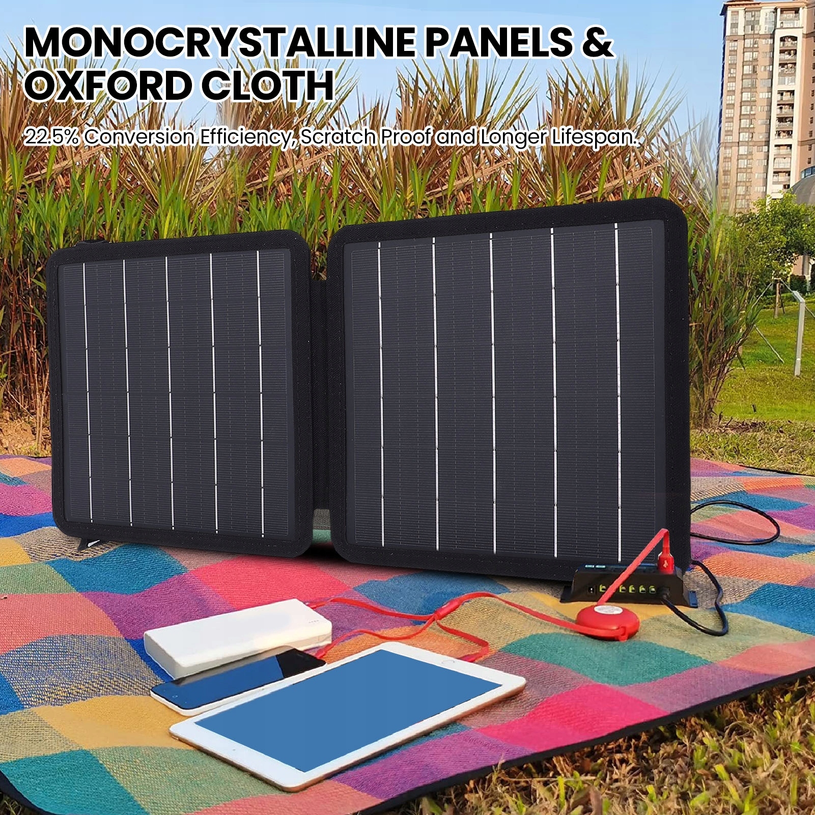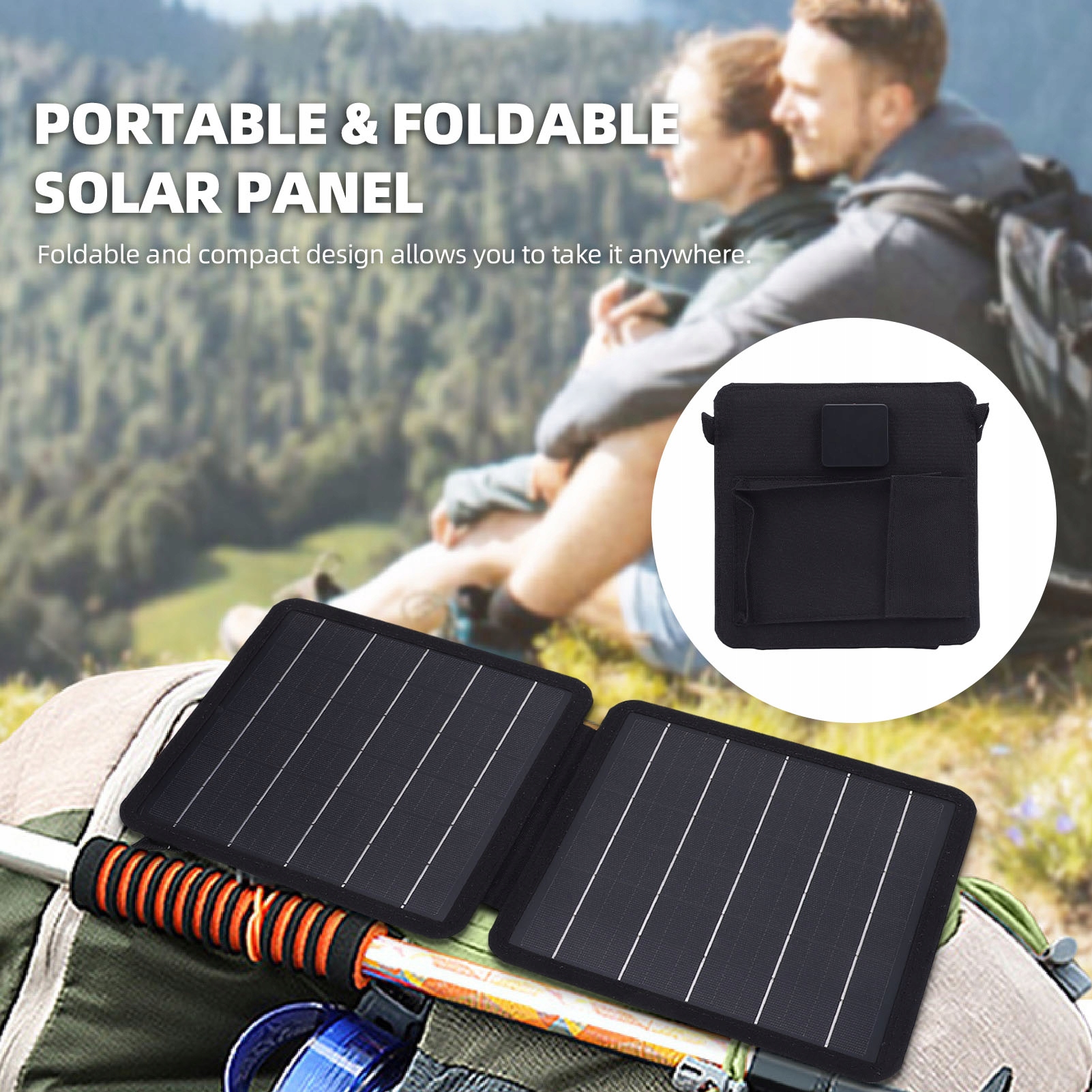 3. Легкий и портативный дизайн: эта складная солнечная панель размером 7,5 x 7,5 дюймов в сложенном виде разработана с учетом портативности. Его можно легко прикрепить к рюкзаку с помощью входящих в комплект пряжек, что позволяет носить его куда угодно. Идеально подходит для тех, кто ценит портативность и хочет всегда оставаться на связи.