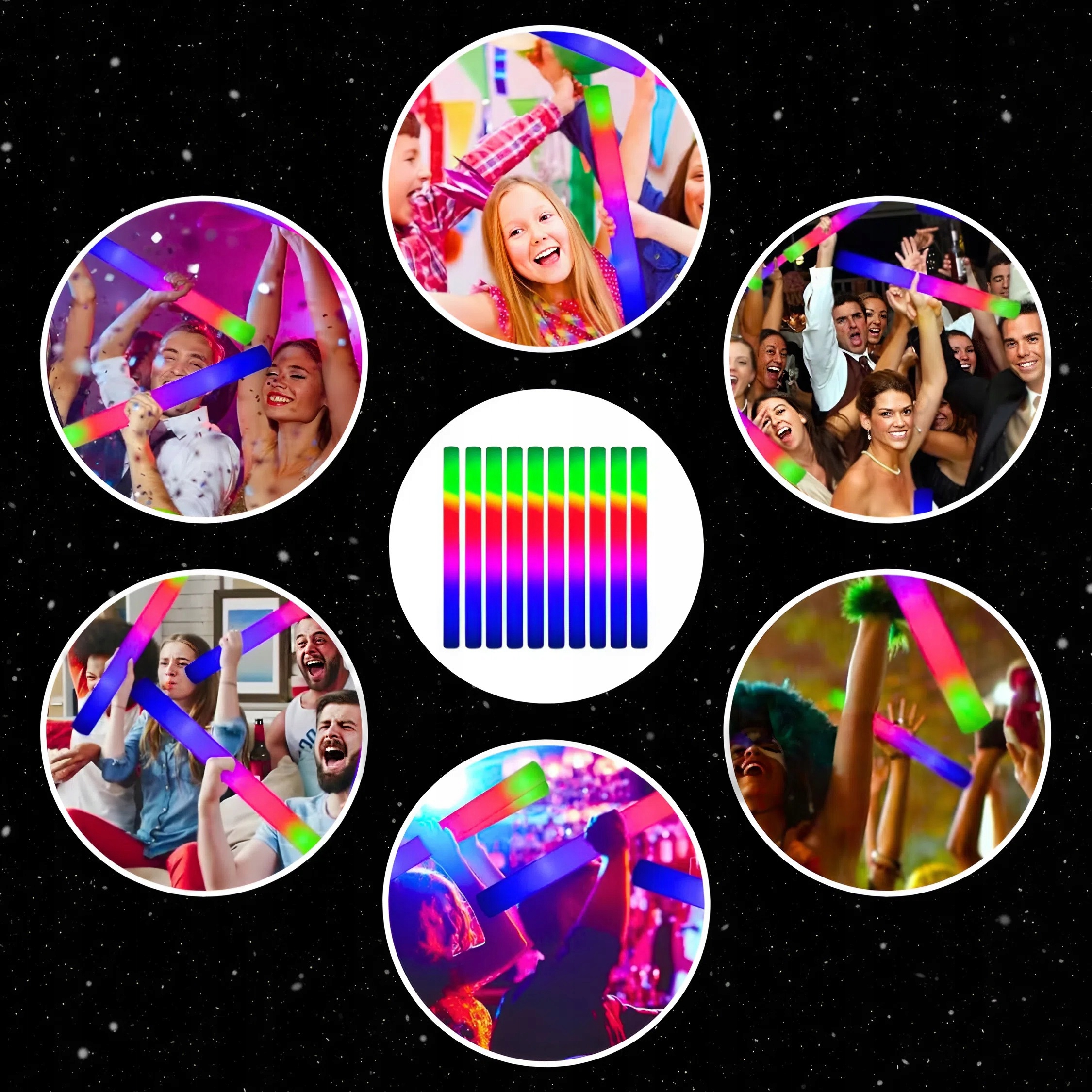 Набор 10 светодиодных пенопластовых дубинок хит любой вечеринки! Они светятся, мигают и меняют цвет, создавая волшебную атмосферу, полную энергии и веселья.