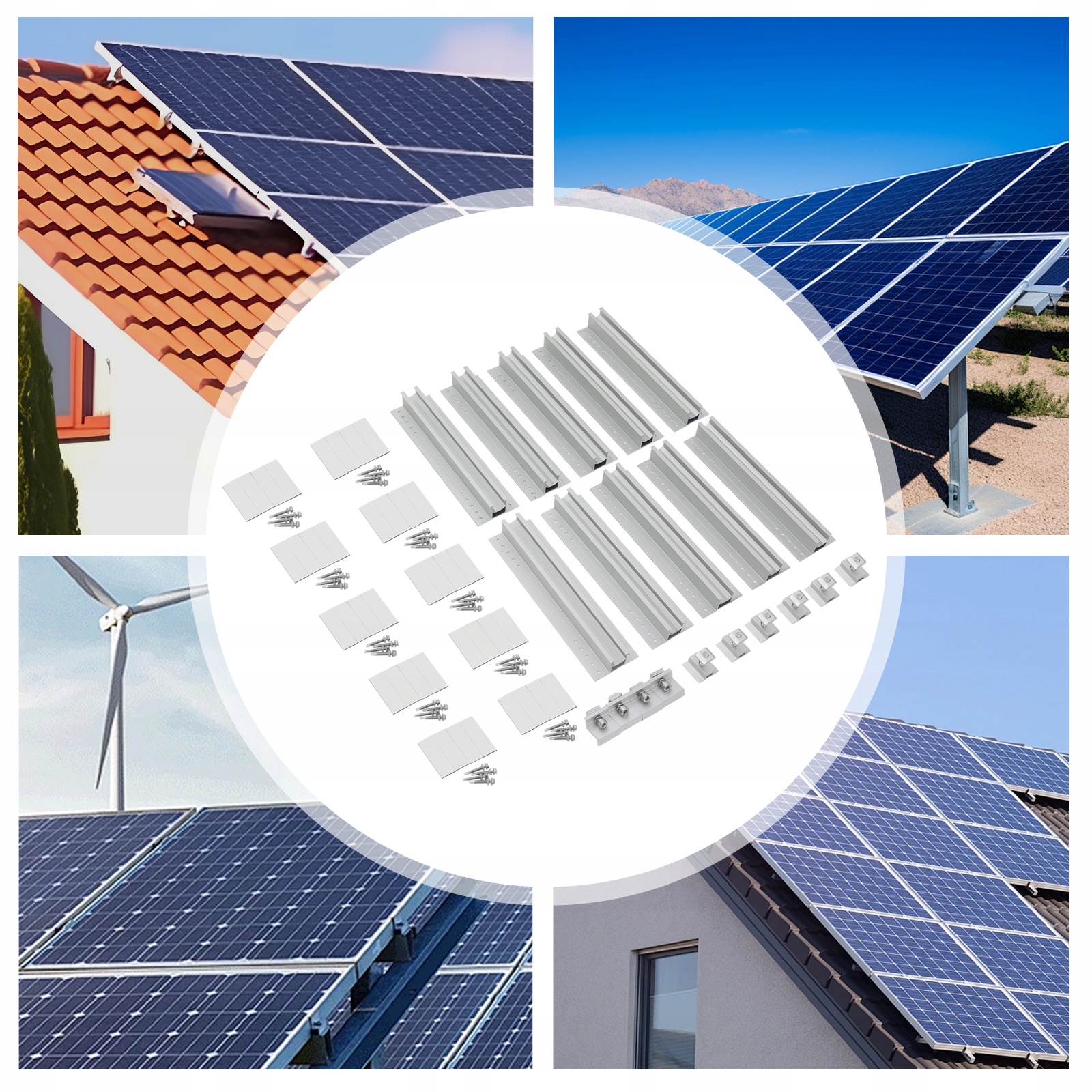 10 МОНТАЖНЫХ КРОНШТЕЙНОВ СОЛНЕЧНОЙ ПАНЕЛИ 10 РЕЙКИ 10 ЗАЖИМОВ