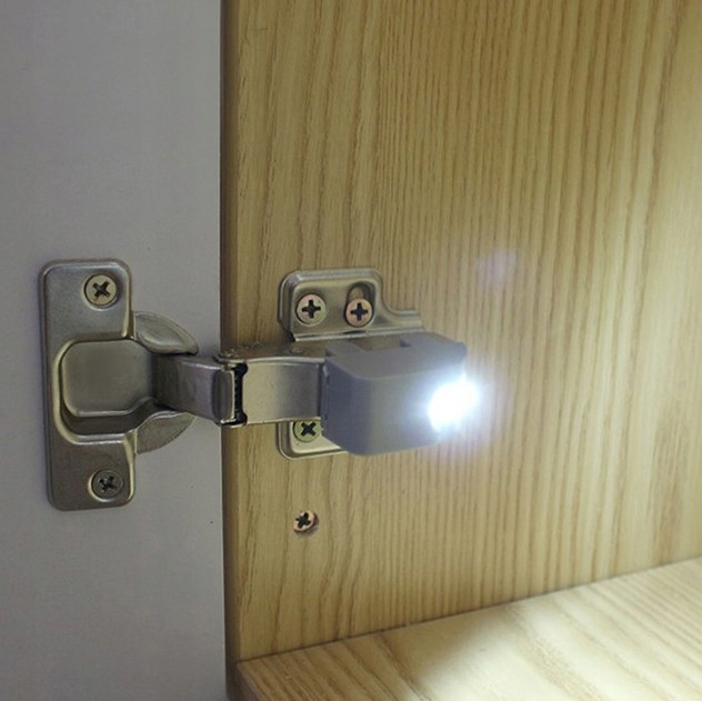 Универсальное крепление на петлях шкафа. После открытия двери свет включается автоматически.