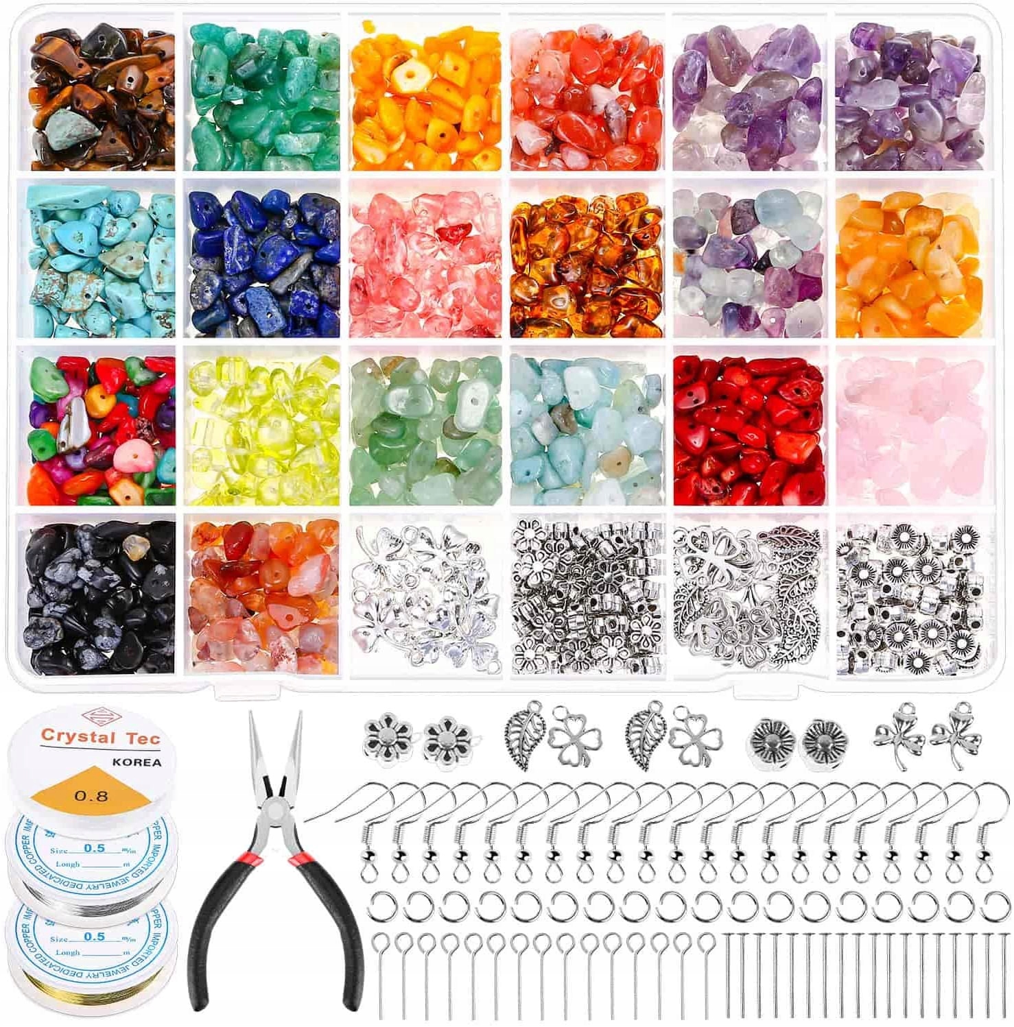 1138 шт. Набор для изготовления ювелирных изделий из хрусталя, набор для изготовления колец из хрустальных бусин, ювелирная проволока и крючки для сережек для изготовления колец, сережек и ювелирных изделий