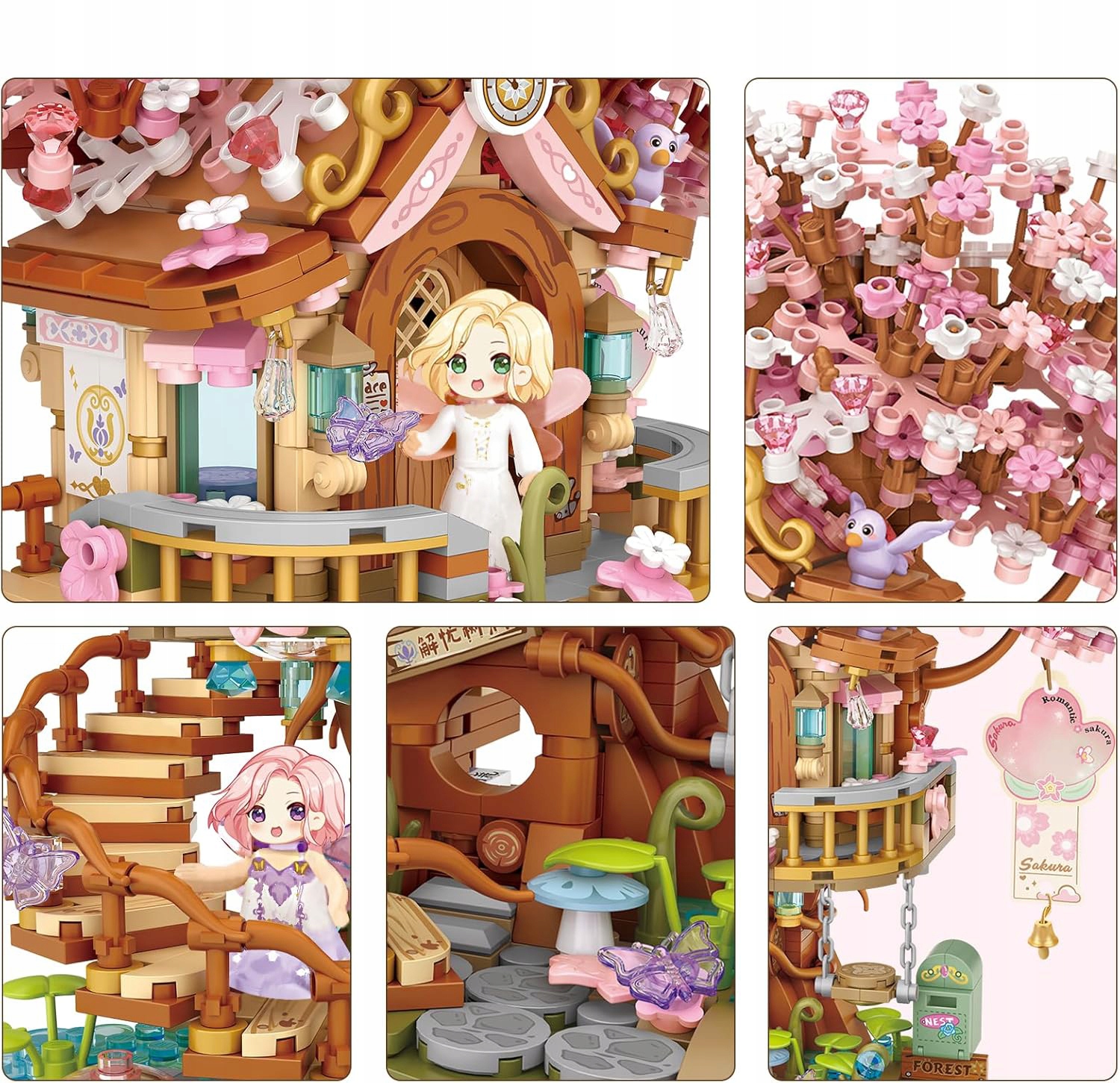 🌸🌸🌸【Специальный дизайн】Набор «Домик на дереве Сакура» вдохновлен вишневым деревом и деревянным домом и идеально подходит для детей и взрослых от 12 лет и старше. Собирая набор, вы увидите такие детали, как винтовая лестница, качели, пруд, птицы, почтовый ящик, поздравительная открытка и многое другое.