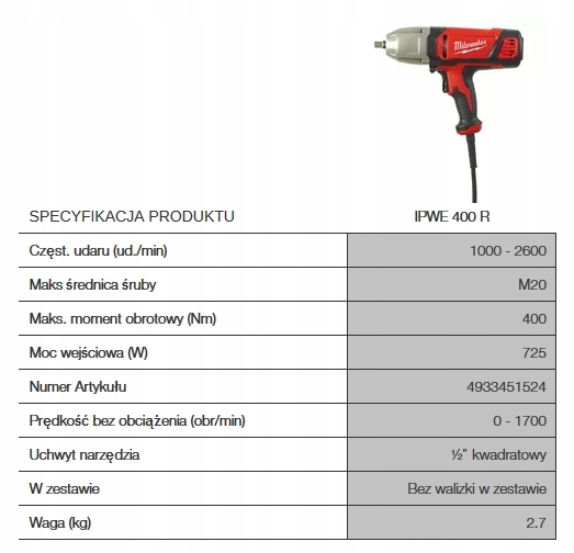 1/2 400NM 725W MILWAUKEE электрический ударный гайковерт