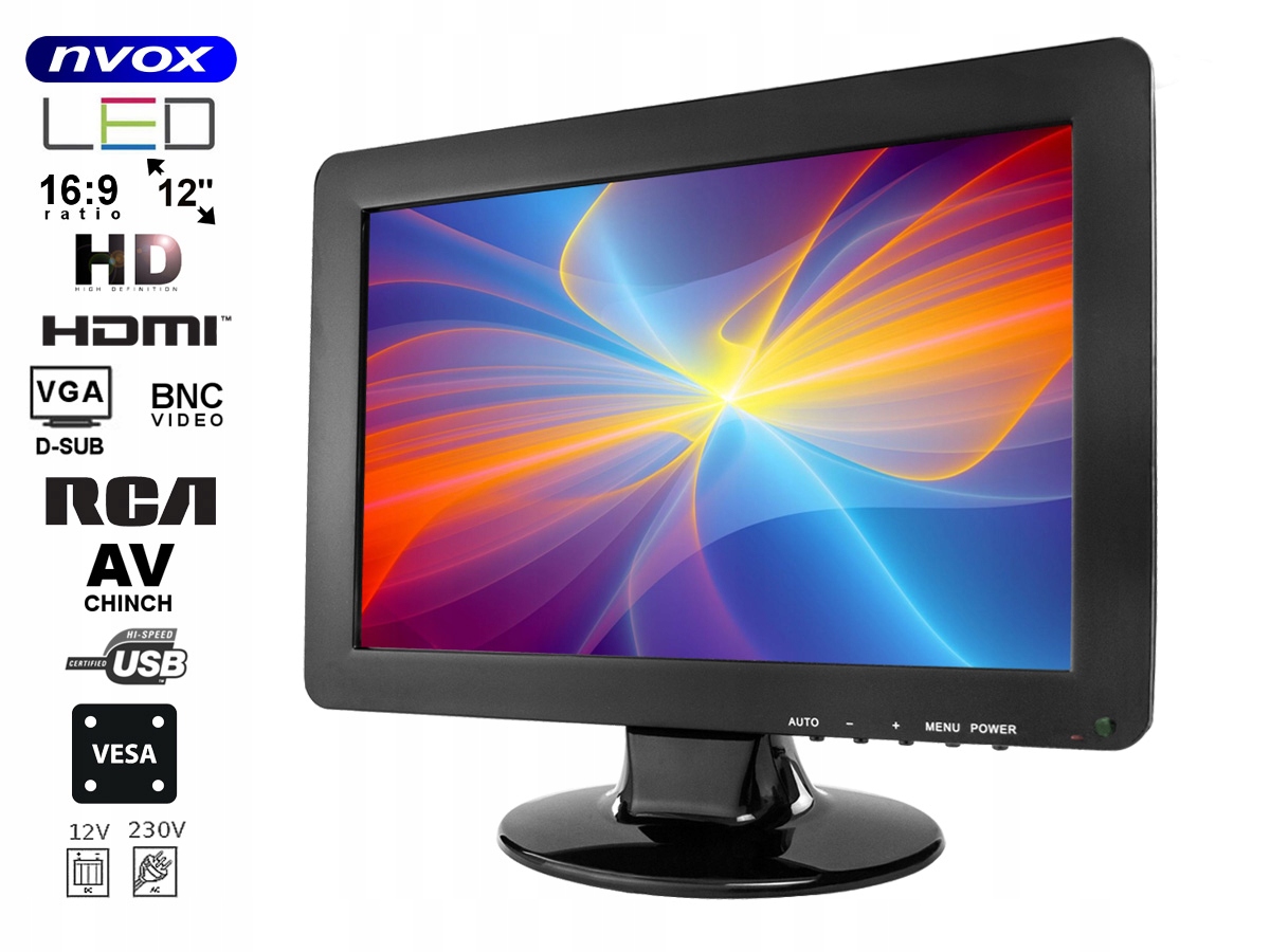12-дюймовый автомобильный монитор со светодиодной подсветкой и входом VGA USB HDMI