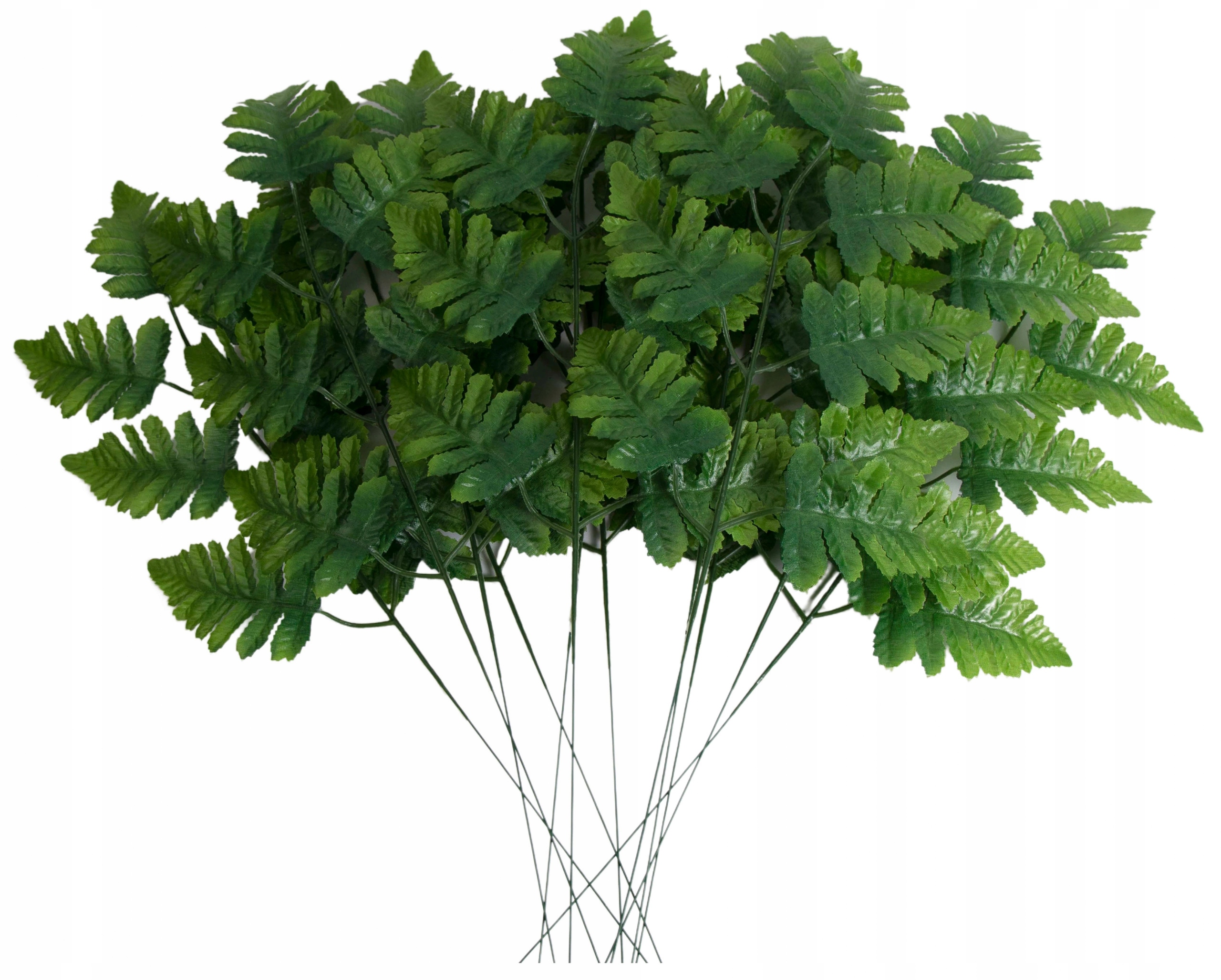 Предложение показывает искусственные листья папоротника. Листья идеальны в качестве добавления флористических композиций, букет. Зеленые листья из материала. Продукт продал 12 штук. Цена на один пакет.