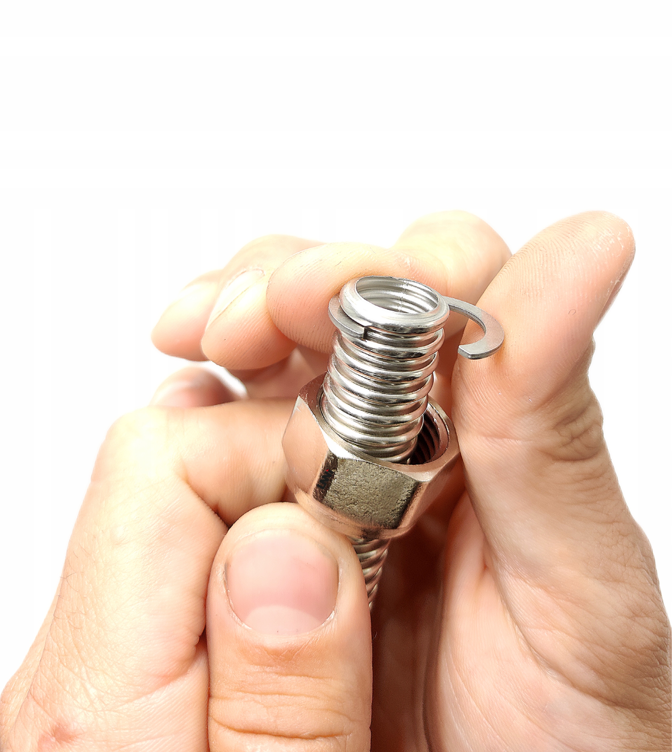 Подготовленный наконечник готов к установке. Следующим шагом будет установка прокладки и свинчивание ее с соответствующей внешней резьбой. Мы также предлагаем профессиональные обжимные прессы. Благодаря прессу надевание манжет осуществляется проще и быстрее.