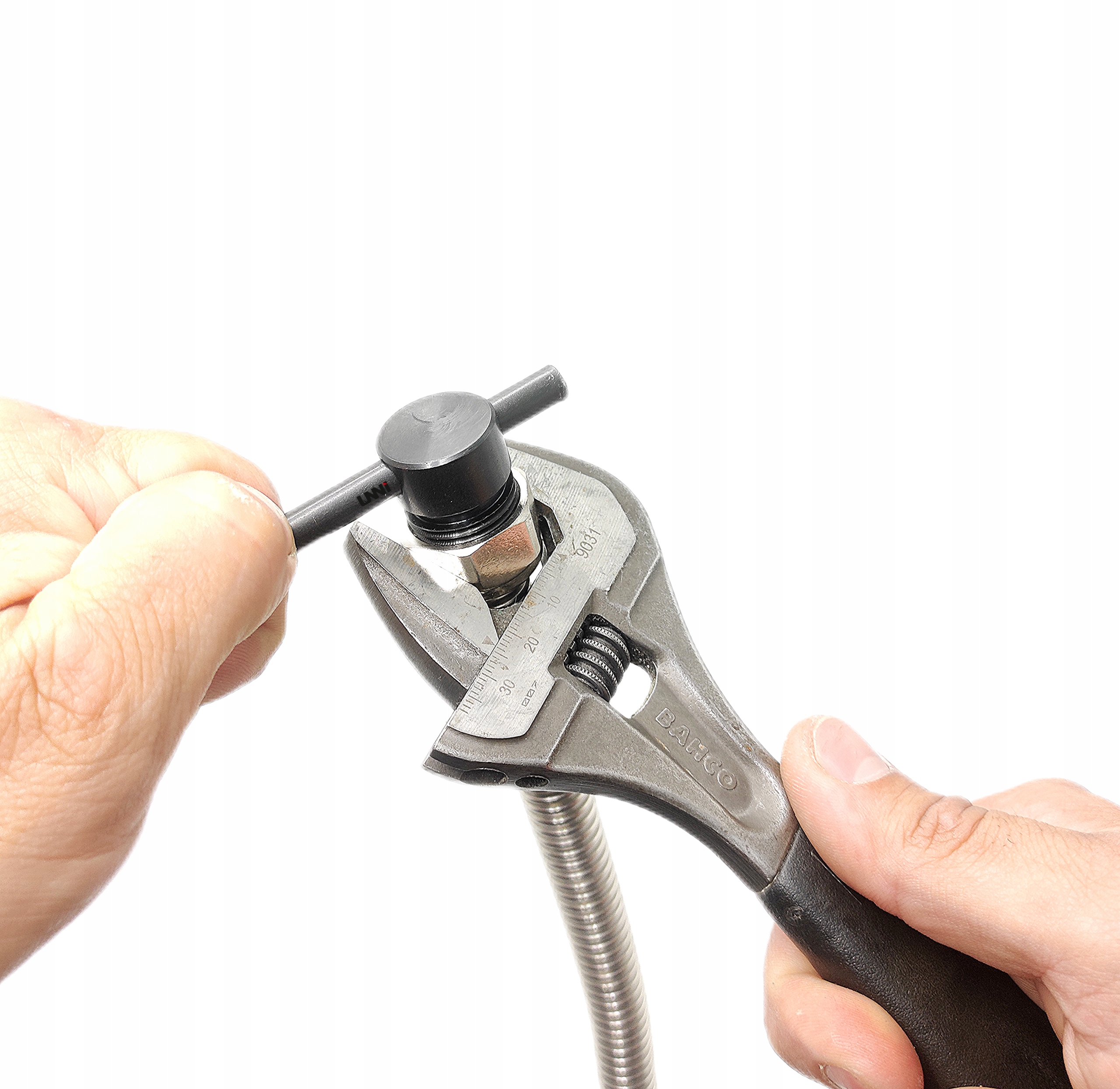 Кольцо можно затянуть руками или гаечным ключом. Для труб большего диаметра необходимо использовать гаечный ключ, поскольку кольцо намного жестче и его труднее сгибать.