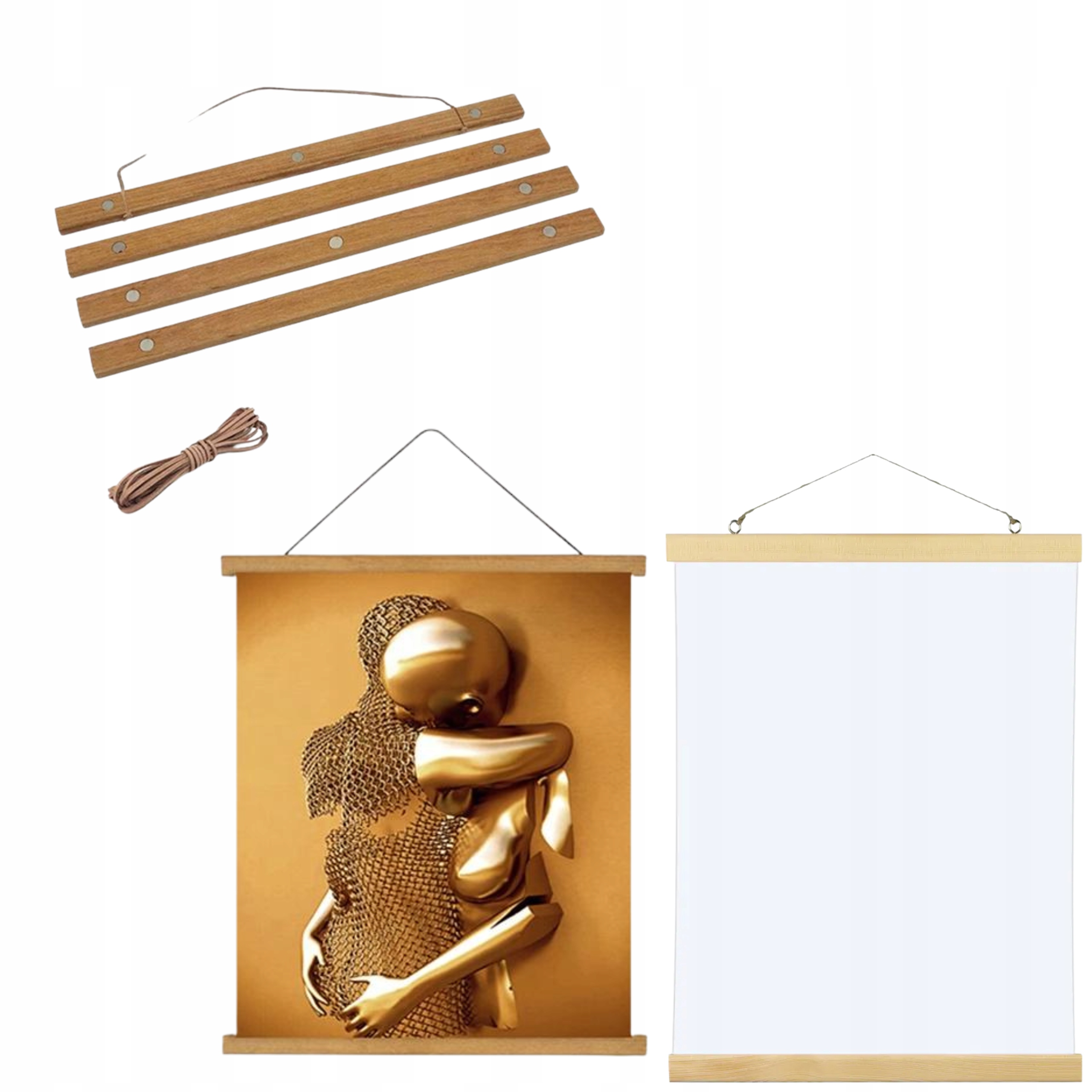 Деревянные вешалки содержат инкапсулированные неодимовые магниты, что позволяет легко держать фотографию или плакат между верхней и нижней парой вешалок.