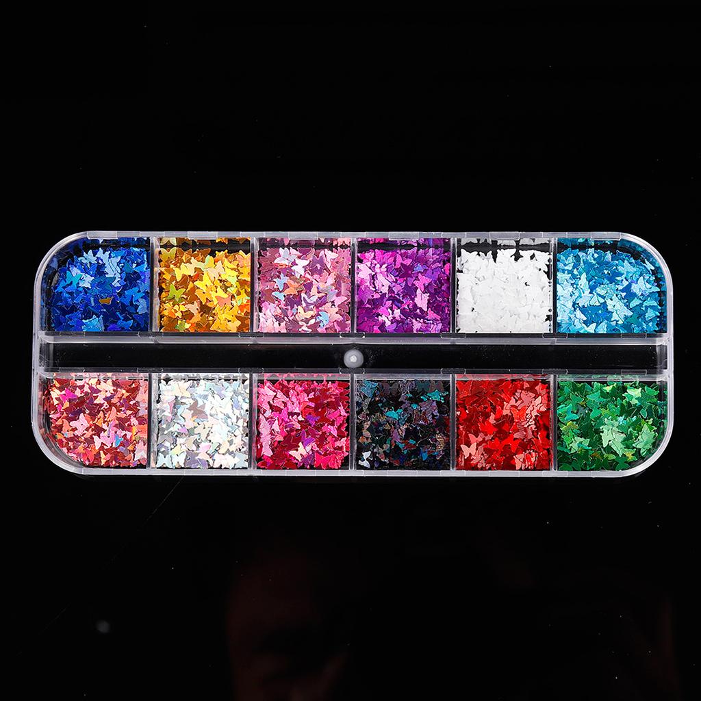 12 различных блесток блестящих бабочек для украшения.