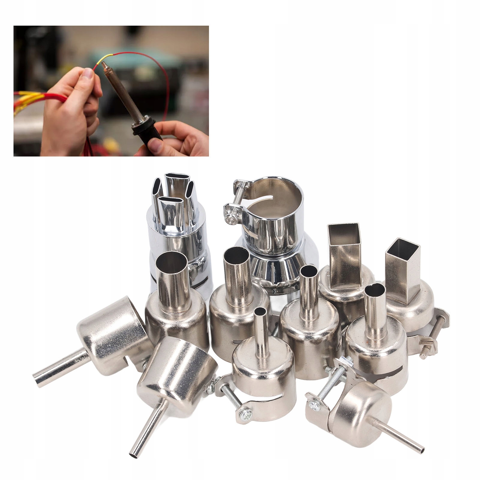 Тип статьи: сопло пистолета горячего воздуха 3 мм / 0,12 дюйма, 4 мм / 0,16 дюйма, 5 мм / 0,2 дюйма, 6 мм / 0,24 дюйма, 7 мм / 0,28 вкл. 0,31 дюйма, 10 мм / 0,39 дюйма, 12 мм / 0,47 дюйма