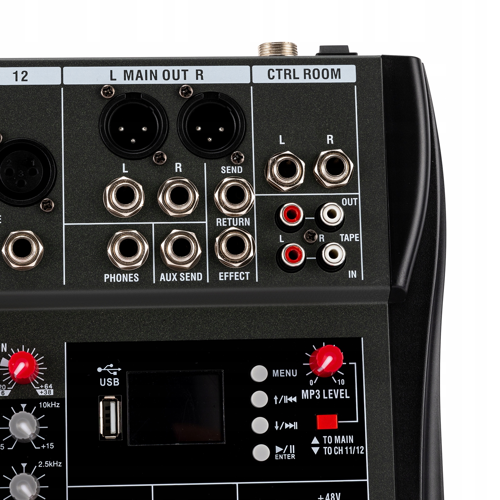 - 12-канальный микрофонный вход: Аудиомикшер идеально подходит для подключения нескольких устройств. , потому что у него 12 каналов. Применение различных аудиорешений, универсальный звук.