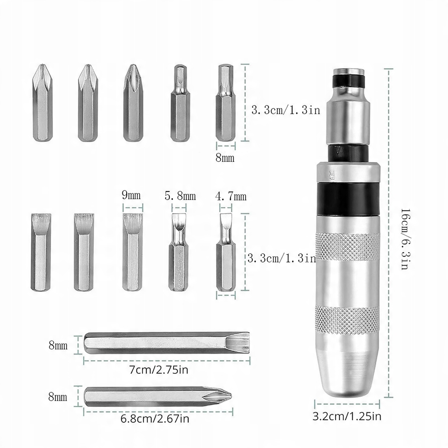 - ✔️ Содержит три различных спецификации бит, плоская отвертка , крестовая и шестигранная отвертки, всего 12 штук, какая из них лучше всего соответствует вашим потребностям потребности.