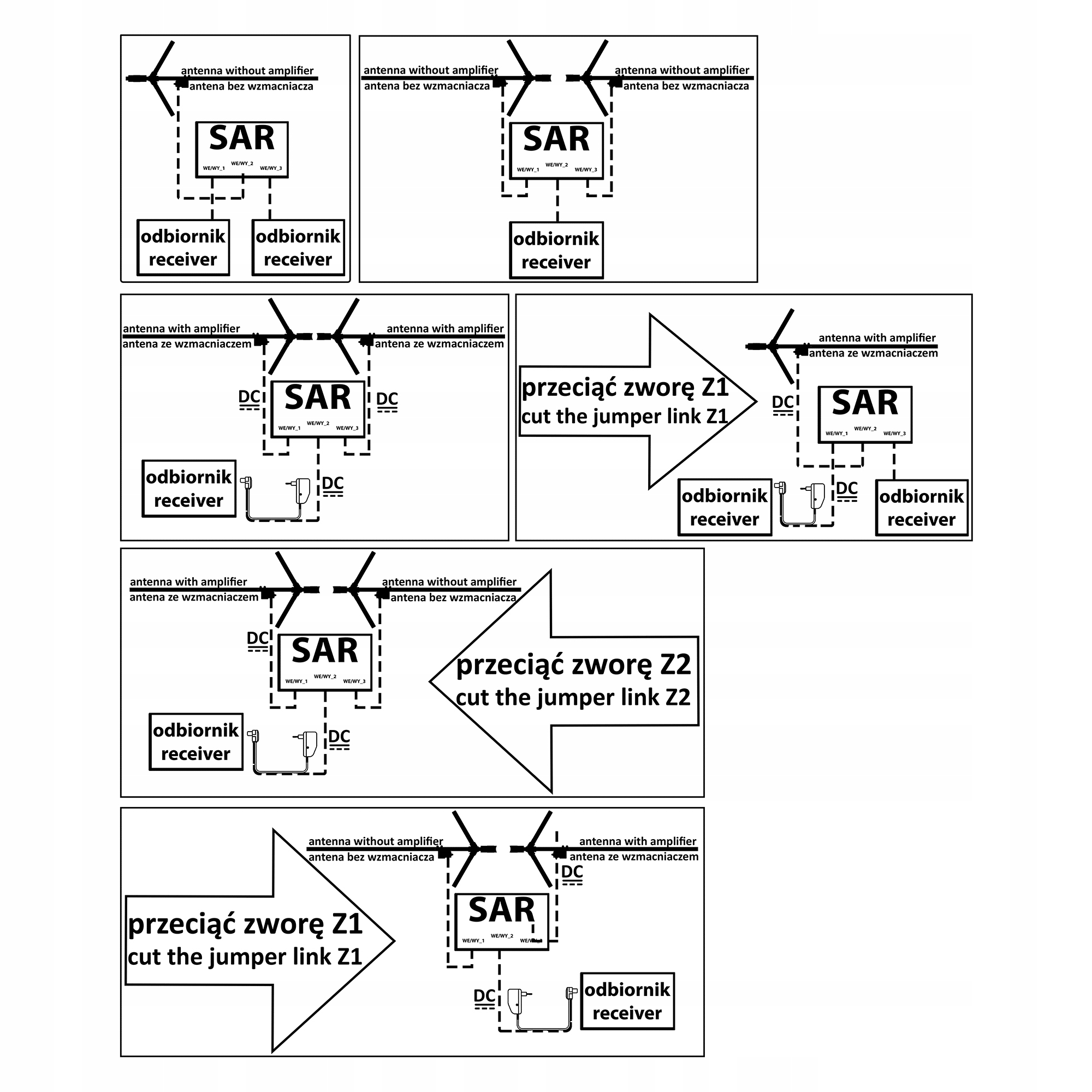 Внимание! Если на усилитель питается только одна из антенн, разрежьте перемычку (Z1 или Z2) в цепи
