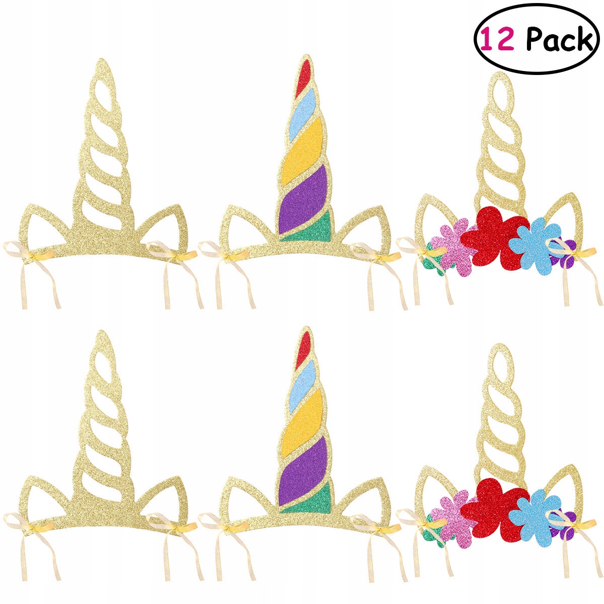 12ШТ ЗОЛОТЫЕ ШЛЯПЫ С ЕДИНОРОГАМИ НА ДЕНЬ РОЖДЕНИЯ, БЛЕСКАЯ БУМАГА