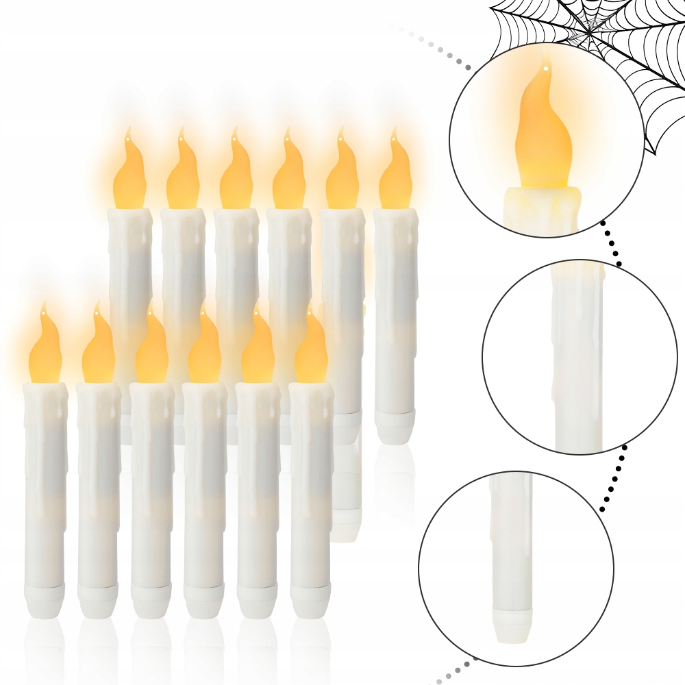 НАБОР ДЕКОРАТИВНЫХ СВЕЧЕЙ НА БАТАРЕЯХ С ВОЛШЕБНОЙ ПАЛОЧКОЙ ДЛЯ МЕРОПРИЯТИЙ, 12 ШТ.