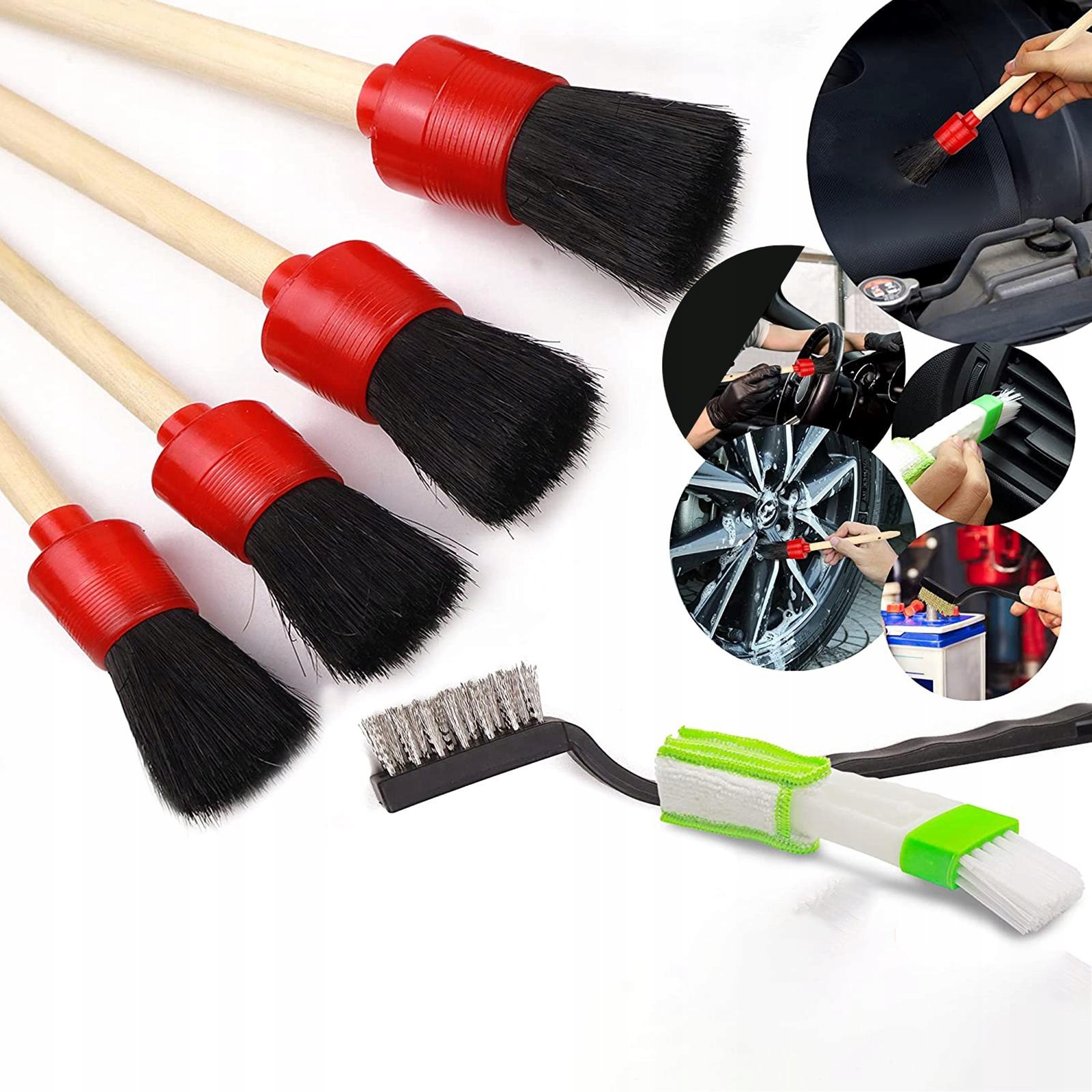 Многофункциональный: набор кистей для детализации внутренней и внешней очистки автомобилей, автомобилей, грузовиков, мотоциклов, велосипедов, кемперов, лодок, шин, спиц, двигателя, выхлопных насадок, колес, вентиляционных отверстий, очков, сидений и других крошечных мест.