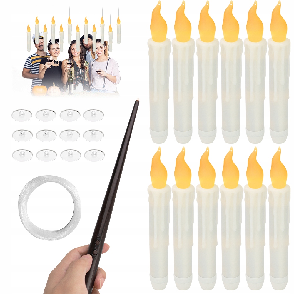 12 ШТ. СВЕТОДИОДНЫЕ СВЕЧИ С ВОЛШЕБНОЙ ПАЛОЧКОЙ ПУЛЬТА ДИСТАНЦИОННОГО УПРАВЛЕНИЯ ПЛАВАЮЩИЕ ПОДВЕСНЫЕ УКРАШЕНИЯ