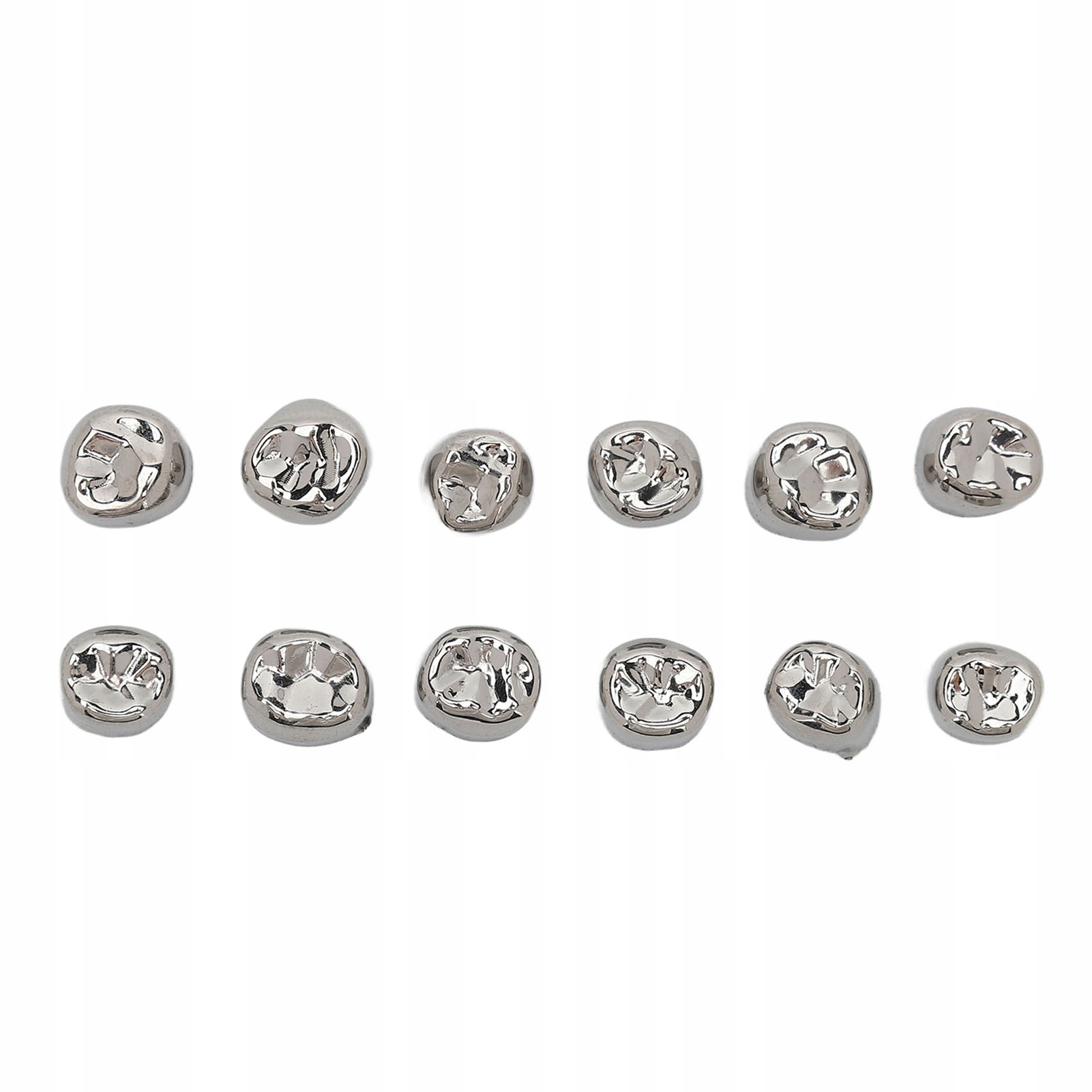 4. В комплект входит: Металлические защитные коронки для зубов содержат в общей сложности 12 штук, которые имеют разные размеры и формы и могут укрепить ваши зубы.