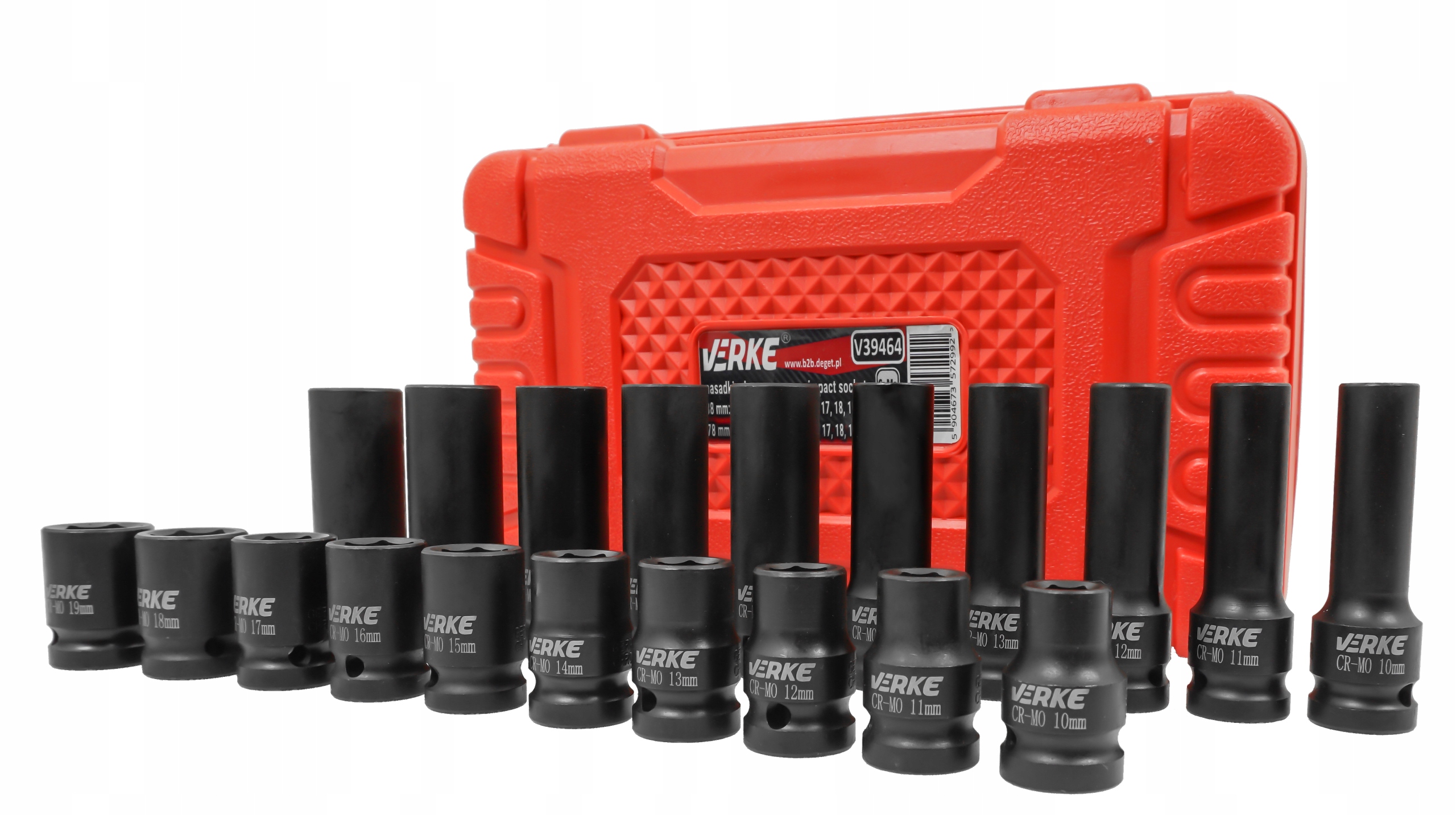 Короткие и длинные ударные крышки 1/2 "20 шт. 10-19 мм Verke
