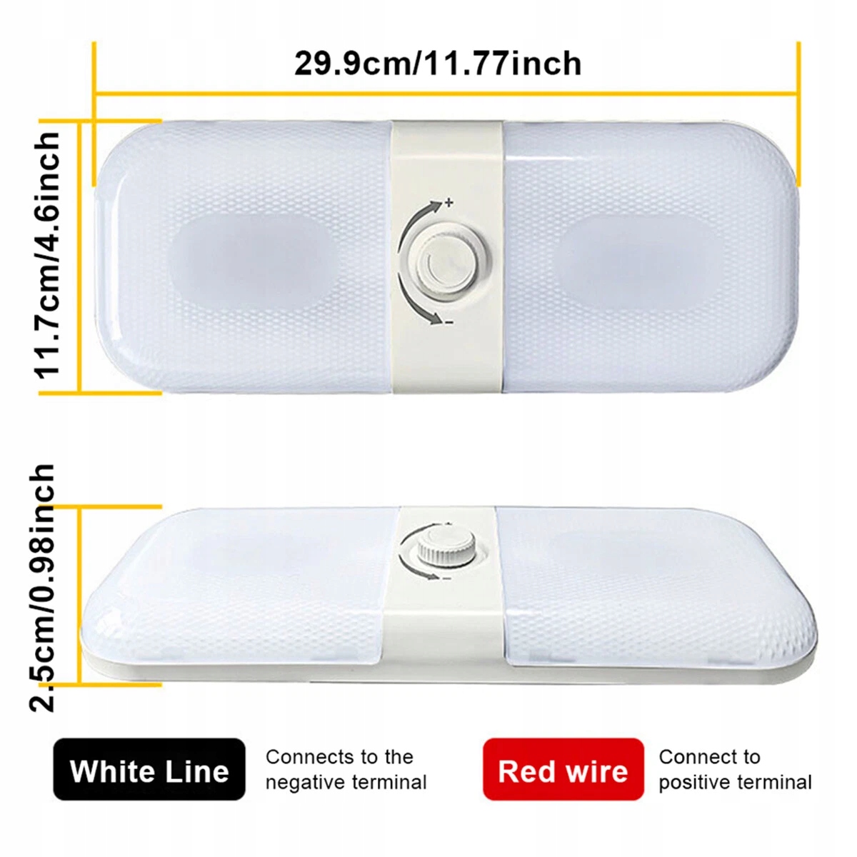 【FIGLESS DIMMUG (20%-100%)】-вращающаяся ручка этого потолка, связывающего RV 12 V-24 В, проводит беспрепятственное затемнение (яркость регулируется в диапазоне от 20%до 100%). Этот интерьер света RV Dome позволяет легко получить идеальное освещение для различных сценариев.