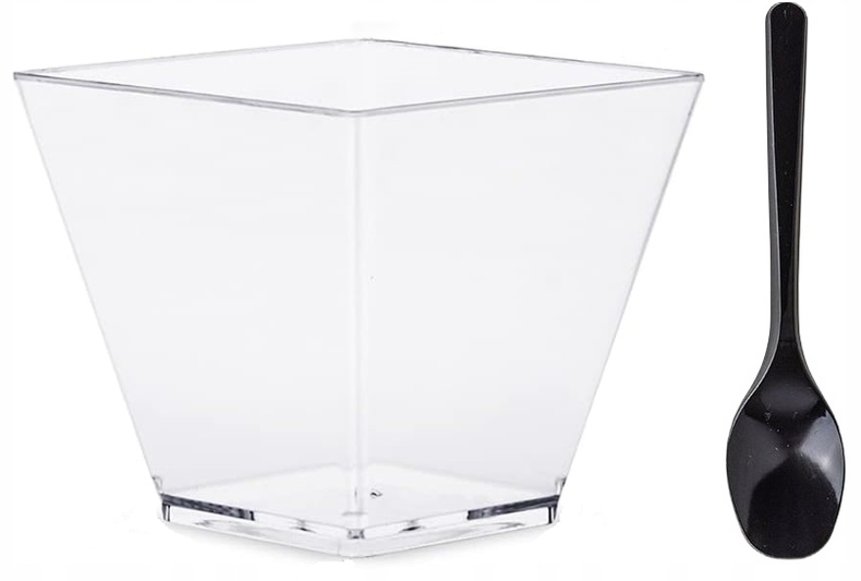 120 мл 24 ШТ + ЛОЖКИ 50 ШТ КВАДРАТНА ЧАШКА ДЕСЕРТНА ЧАШКА ДЛЯ ФУДІВ