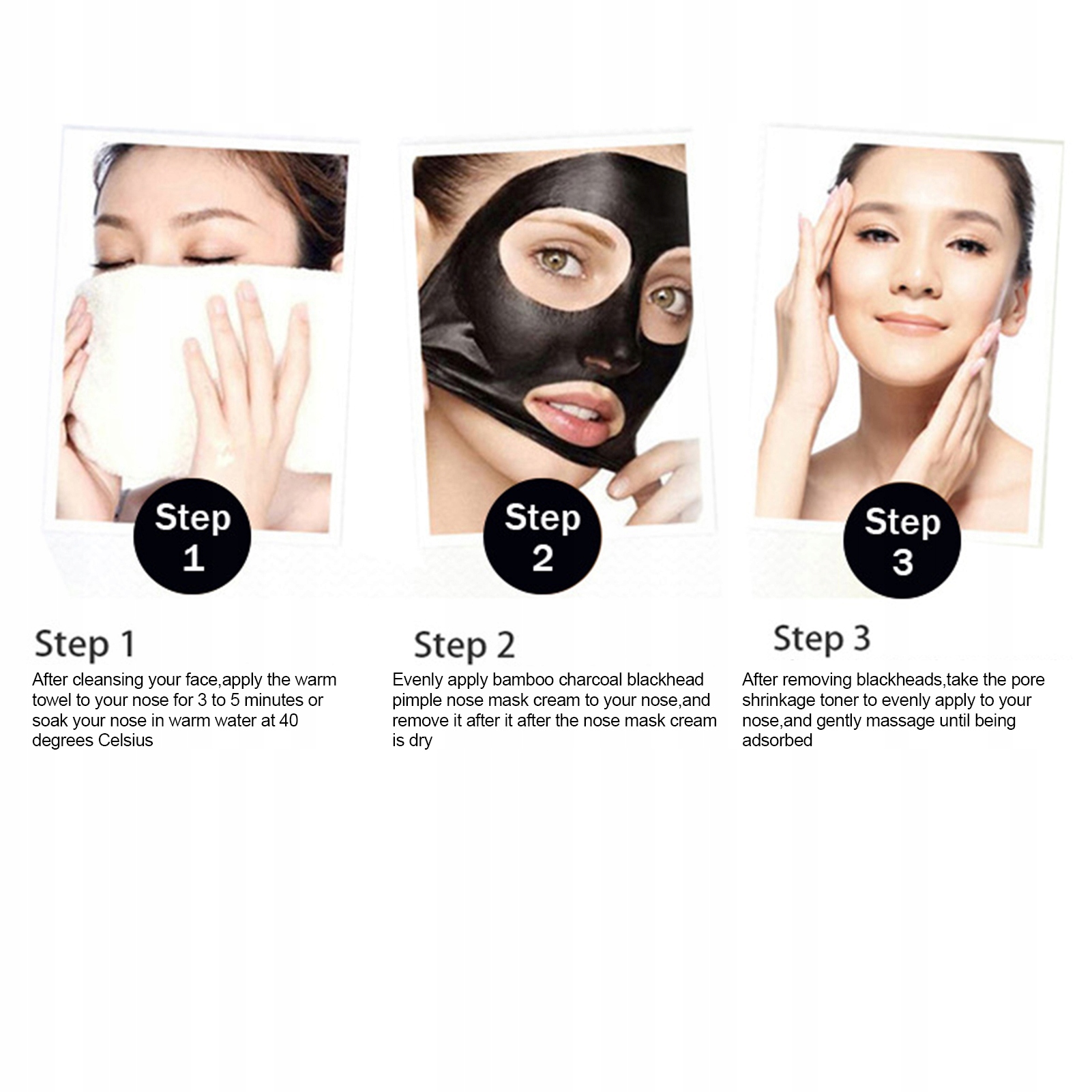 Шаг 1: после очистки лица, нанесите тепло На креме носа с маской с бамбуковыми прыжками и черными переливами, а затем удалите его после сушки крема с маской на носу