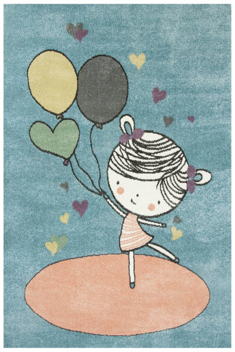 ЛИМА — ковры, которые мы рекомендуем родителям, украшающим спальни девочек. Ковры Лима хорошо подойдут в качестве оригинального декоративного аксессуара при обустройстве детских комнат. Представленный ковер украшен узором маленькой девочки с воздушными шарами среди сердечек. Он выдержан в спокойной цветовой палитре, сочетающей серый, бирюзовый, фиолетовый и розовый. Мягкий флис соткан из полипропиленовой пряжи, а низ ковра отделан джутом.