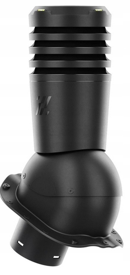- жесткая угловая труба, проходящая под углом 90 градусов через скат крыши, длина трубы выступает за пределы основания составляет примерно 10 см.