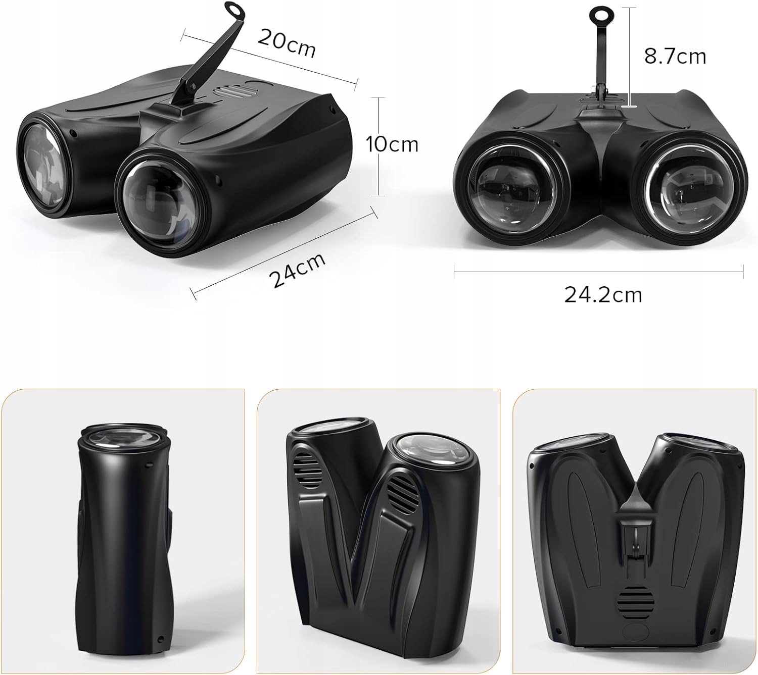 - Различные конструкции - шаблоны автоматически меняются с регулируемой скоростью переключения заднего переключения, проекционным светом с эффектом цифрового массива и динамическим эффектом скорости света, DJ Light, который обеспечивает прохладные визуальные эффекты.