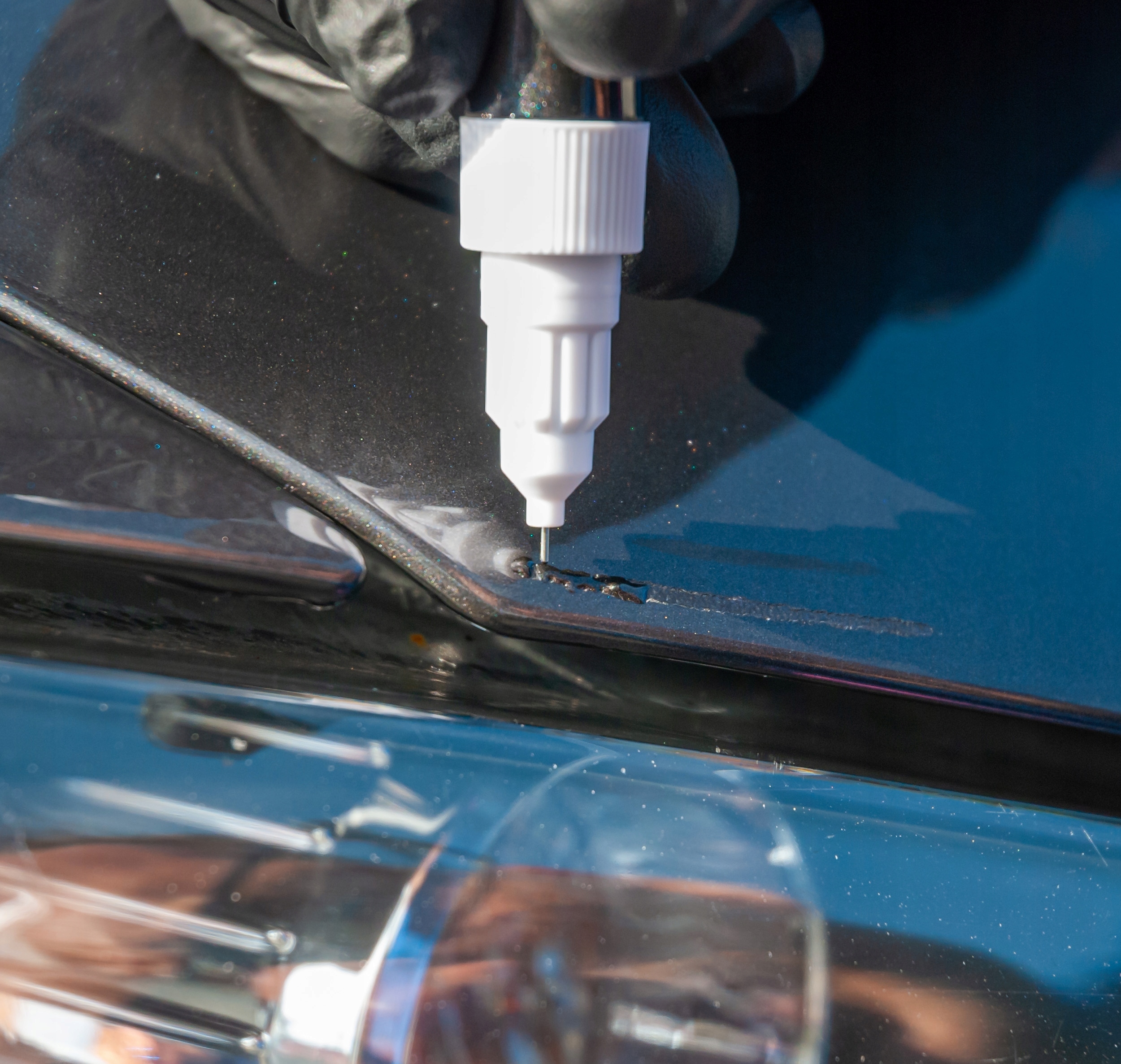 Набор для краски 2-в-1 подкраска с возможностью нанесения лака кистью или после переворачивания специальной иглой.