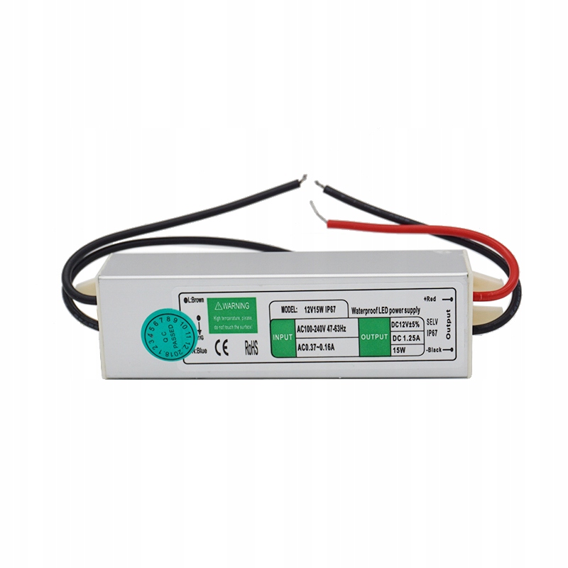 12V 15W IP67 ВОДОНЕПРОНИЦАЕМЫЙ СВЕТОДИОДНЫЙ ИСТОЧНИК ПИТАНИЯ