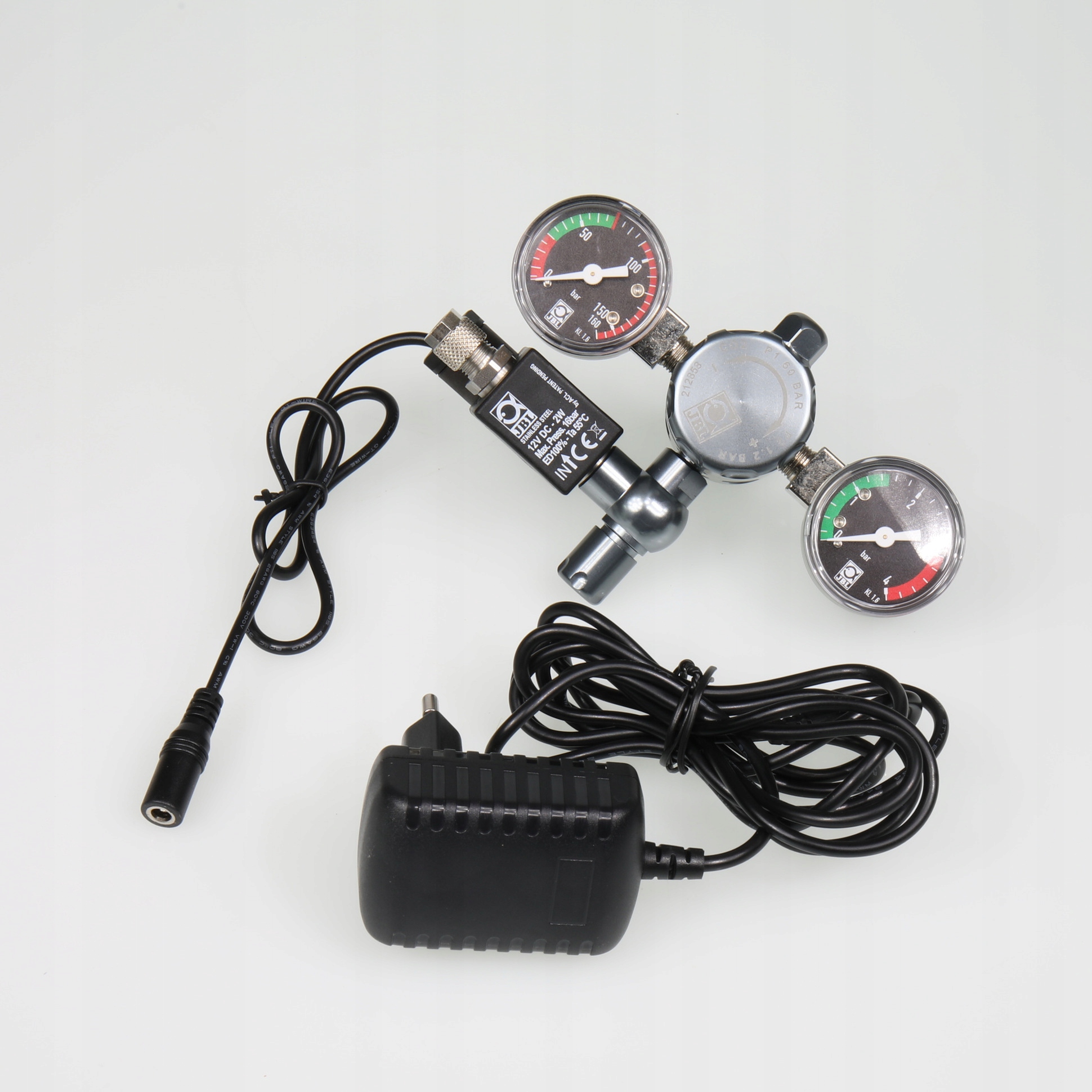 Редуктор CO2 с двумя манометрами и магнитным электромагнитным клапаном для отключения газа в ночное время.