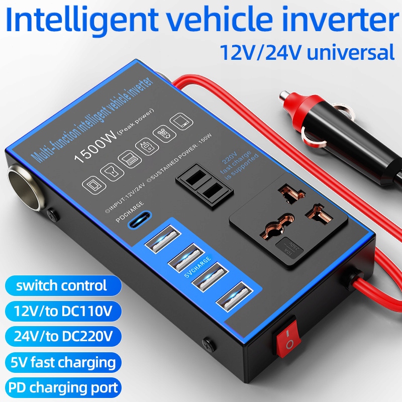 12V24V инвертор до 220 В многофункционально с высокой емкостью 1500 Вт