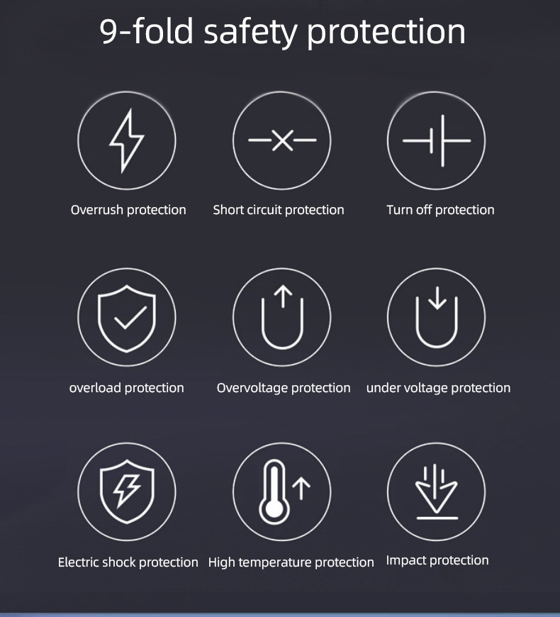 • Многие безопасности: защита от перегрузки, короткого замыкания и перегрева, чтобы обеспечить безопасное использование. •