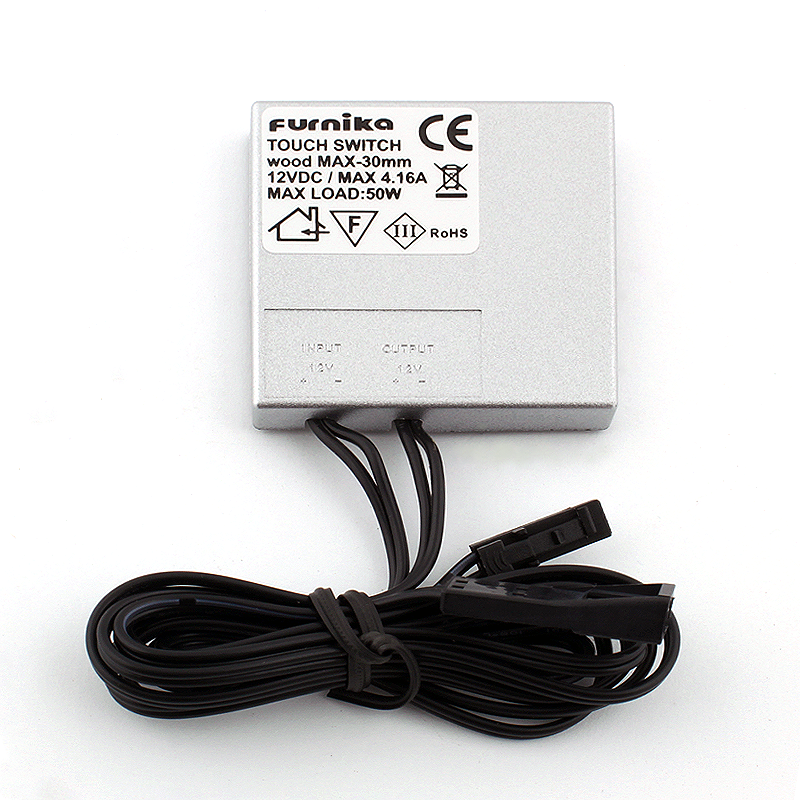 Сенсорный переключатель через пластину предназначен для использования внутри помещений и рассчитан на напряжение питания 12В.