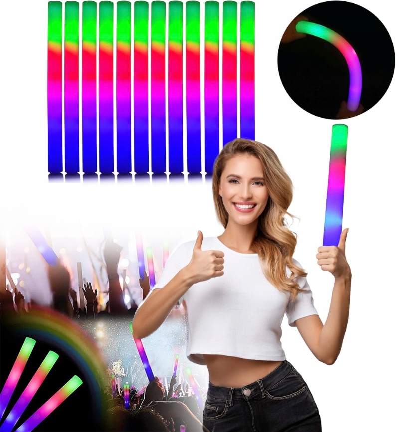 ✅ Набор из 12 светящихся светодиодных пенопластовых дубинок — идеальное решение! Эти уникальные аксессуары излучают интенсивный свет в трех режимах освещения, создавая незабываемую атмосферу - независимо от места и случая.