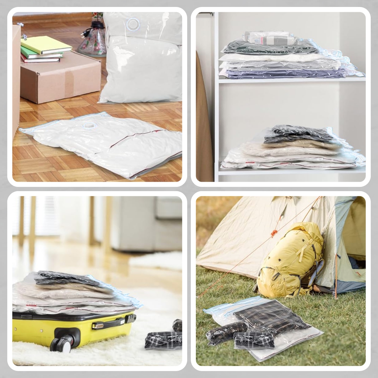 ✅Идеально подходит для путешествий: Вакуумные пакеты представляют собой незаменимый элемент каждой поездки, позволяющий сжимать одежду и экономить место в чемодане, защищая ее от влаги и грязи.
