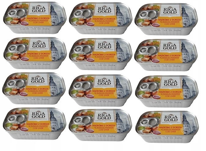 12xWĄTRÓBKI Z DORSZA W TŁUSZCZU WŁASNYM 121g RIGA