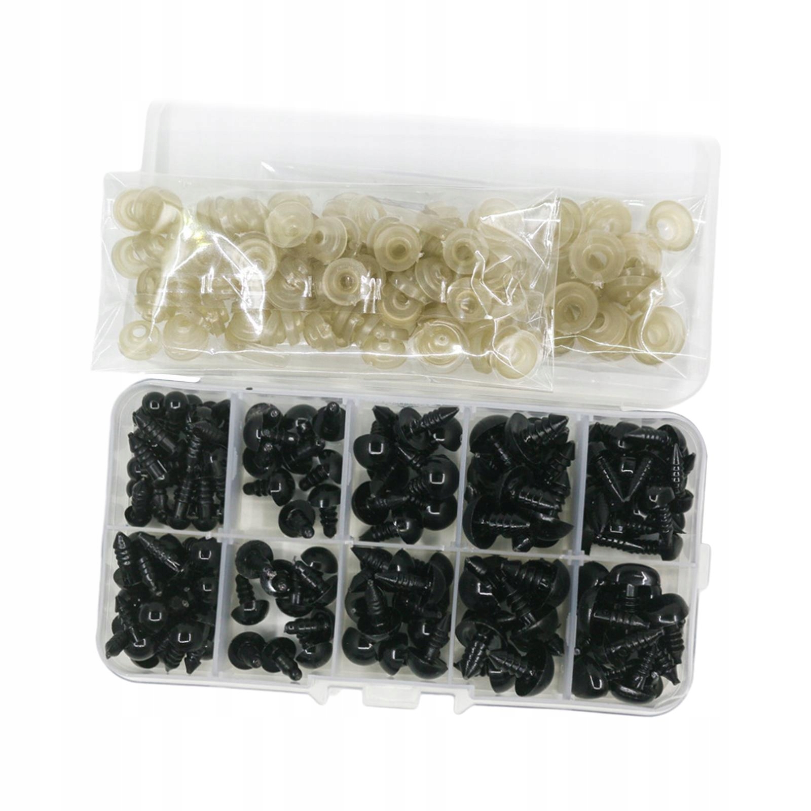 [глаза и носы] В наборе, черные глаза и носы в разных размерах: глаза 6 мм (20 шт.), 8 мм (20 шт.), 9 мм (20 шт.), 10 мм (20 шт.), 12 мм (20 шт.); Noski 7mmx9mm (20pcs), 9mmx11mm (15pcs).