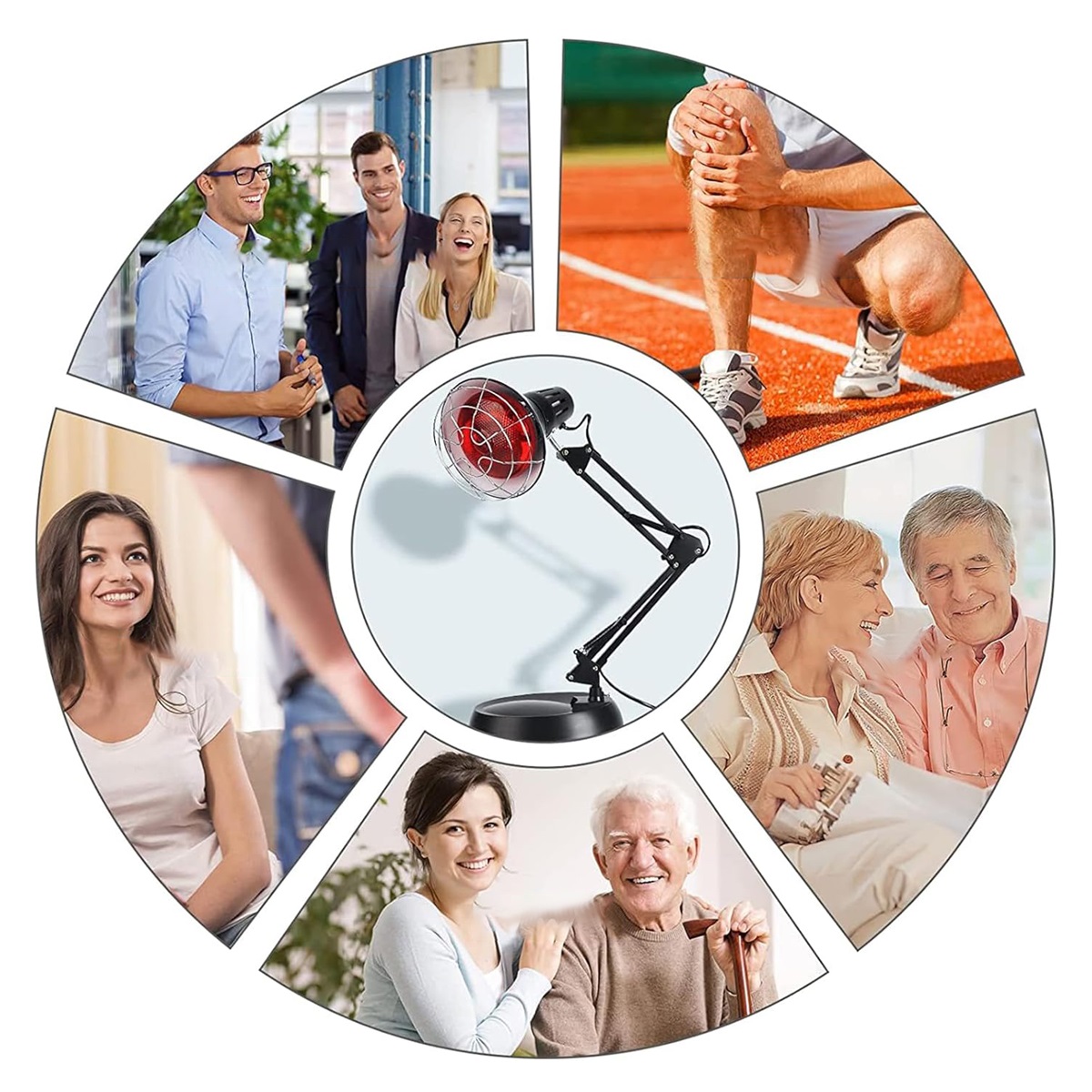 - Инфракрасная нагревательная лампа имеет стабильное и твердое основание с регулируемой рукой и головой. Вы можете настроить положение и направление лампы в зависимости от ваших потребностей.