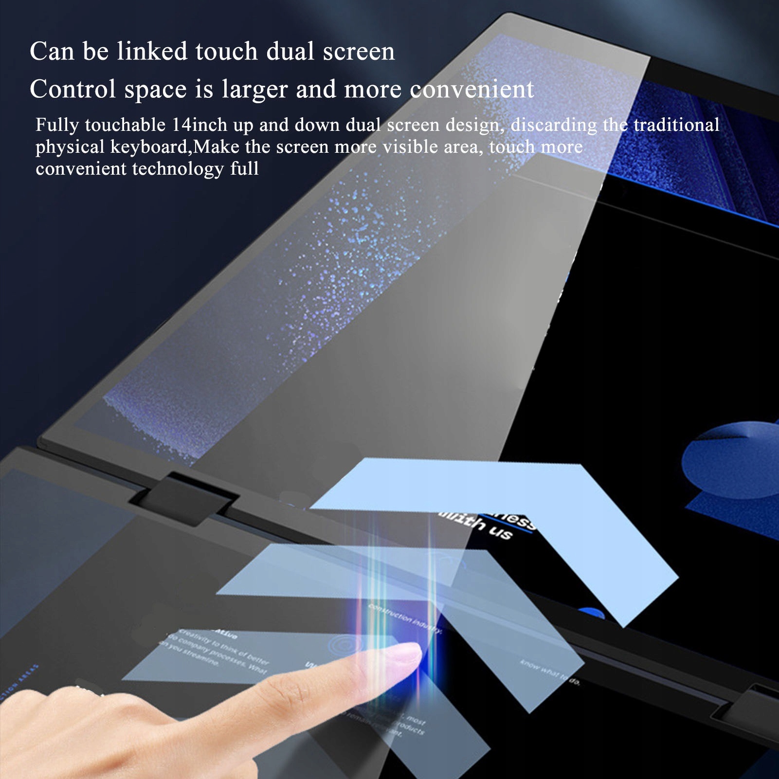 - Экран: 2pcs 14 дюймов 2,2K HD Экран 2240 x 1440, 10 -точечный емкостный сенсорный экран