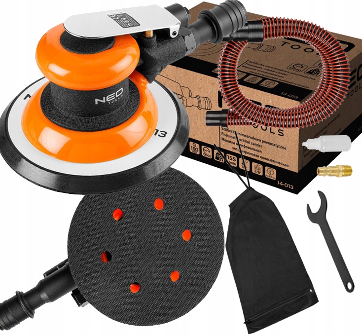 : 5907558469028 : 59075588469028 : 5907558846902814-013 Пневматическая мимическая шлифовальная шлифовка 150 мм, вакуумная пыльная всасываемая всасывание Neo Инструменты