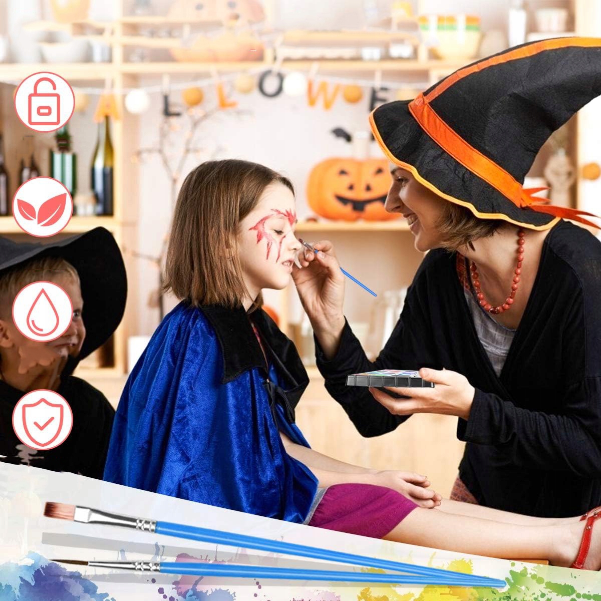 🦇 Безопасно в использовании: Этот набор для рисования лица подходит для всех детей и взрослых с чувствительной кожей. Гипоаллергенен и безопасен для кожи, не вызывает зуда и раздражения кожи. Безопасно и нежно для чувствительной кожи.