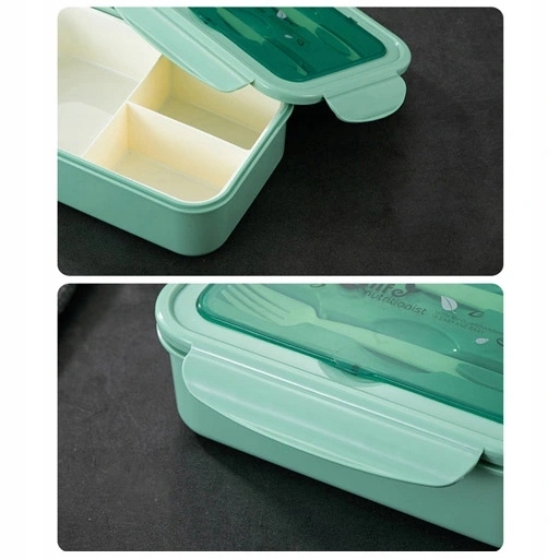 Отдельное отделение, пищевой полипропилен, встроенные столовые приборы, герметичные для предотвращения переполнения.