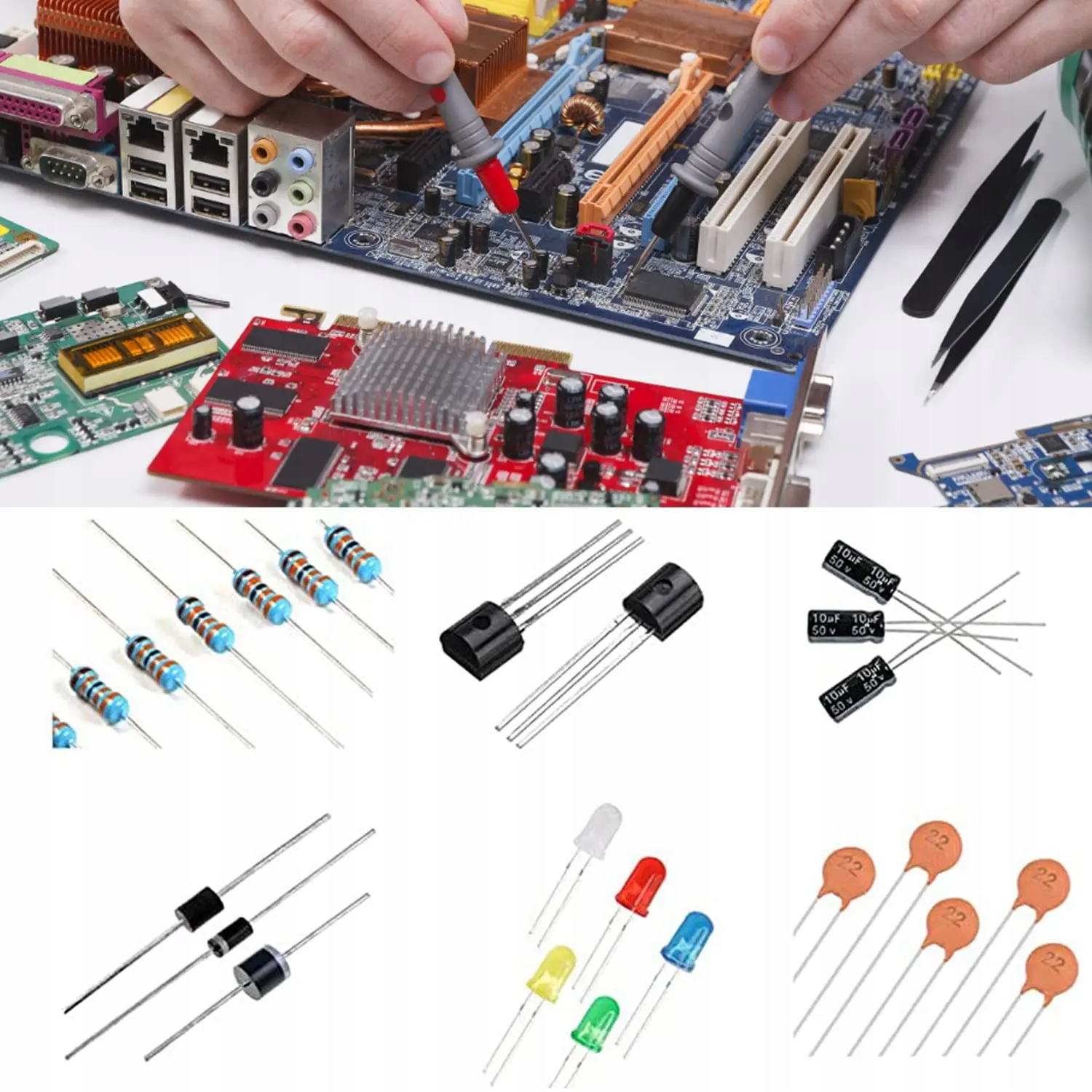 【Lieferumfang】 das set mit elektronischen componenten umfasst 6 verschiedene arten von componenten: de-dioden, metallschtwidejständde, elektrolytcondecjatatorpaket, gwöhnliche dioden, keramikkondensatoren, ghehehnliche, keramikkondesatoren Insgesamt 1400 Stück.
