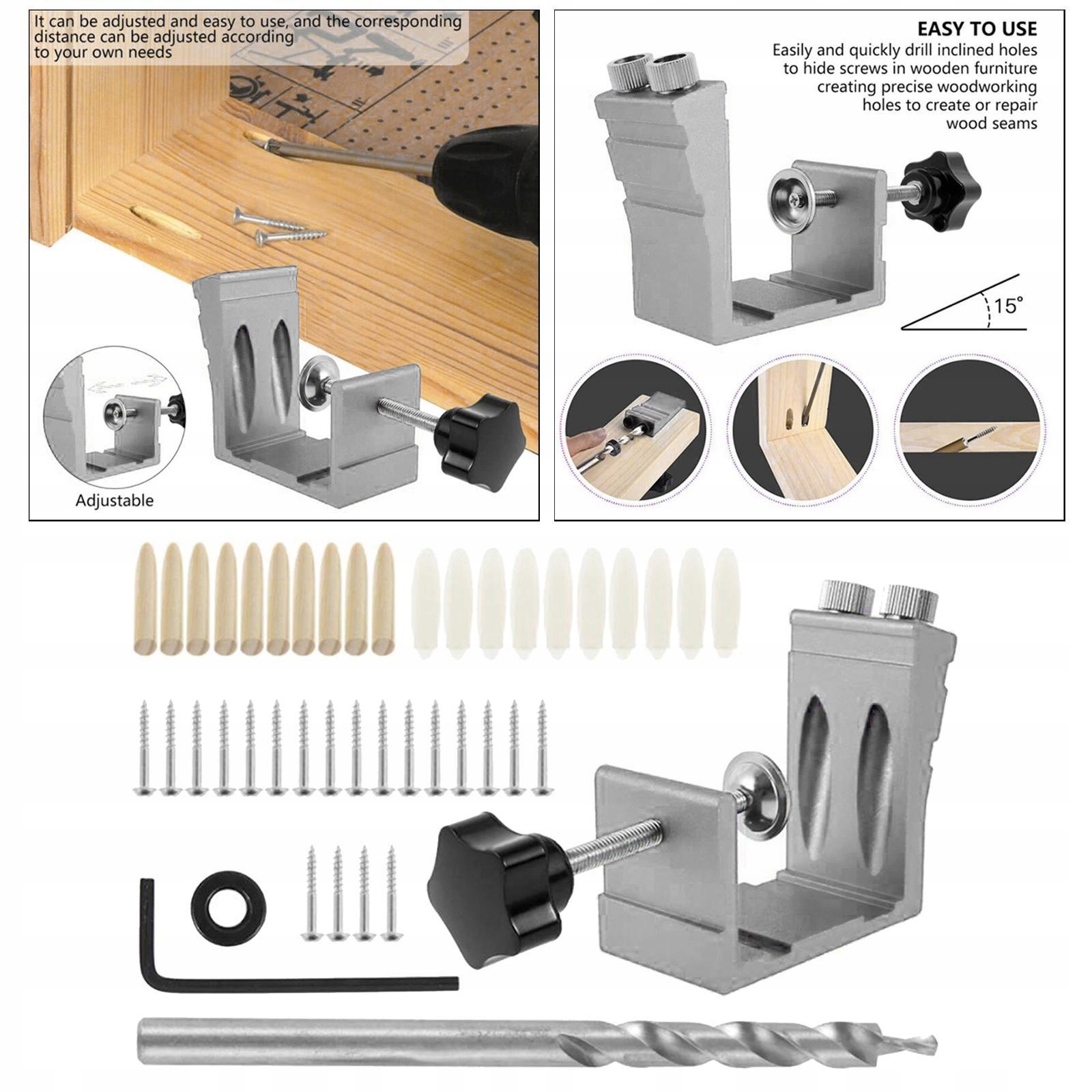 Материал - изготовлен из твердого алюминиевого сплава, никогда не ржавеет и не разрывается, он легко просвечивает наклонные отверстия, чтобы соединение было идеальным. Используйте этот набор оборудования для создания собственных проектов по деревообработке.