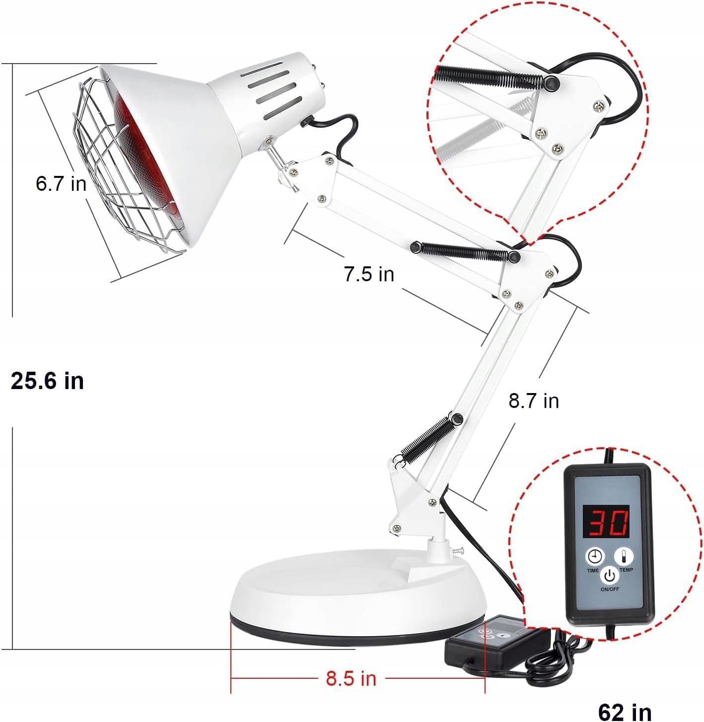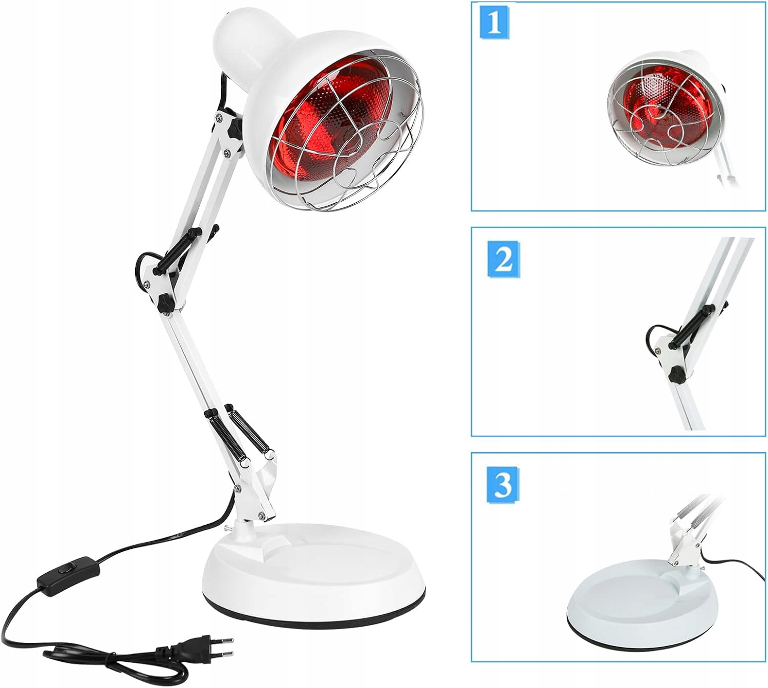 - Нагревательная лампа для инфракрасного положения имеет стабильное и твердое основание с регулируемой рукой и головкой. Вы можете адаптировать лампу в правильное положение и ориентацию в зависимости от ваших потребностей.